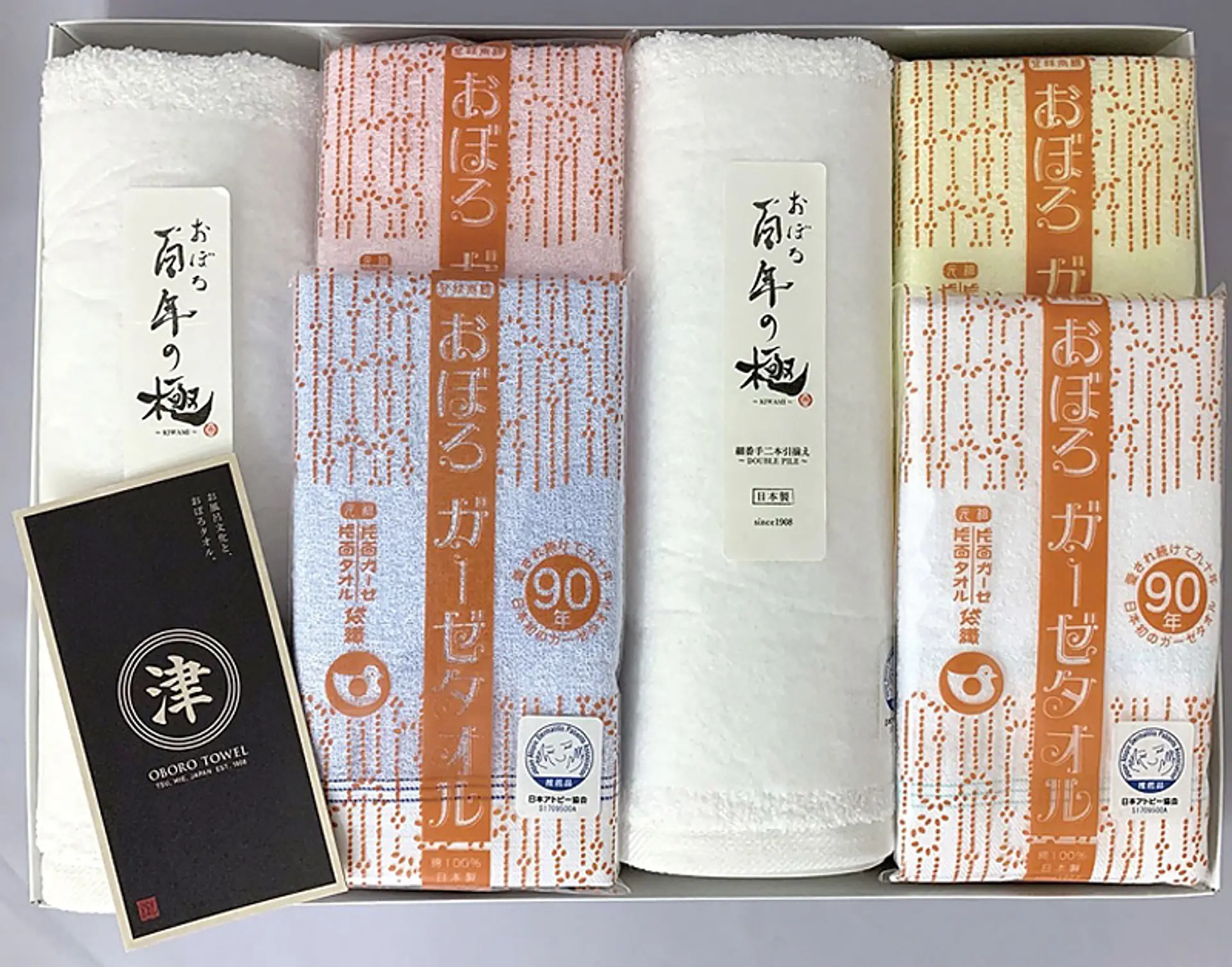 今回ご紹介させていただいている『おぼろ百年の極・おぼろガーゼタオルセット』には含まれていませんが、海外の方へのお土産としても喜ばれること間違いなしの逸品です。