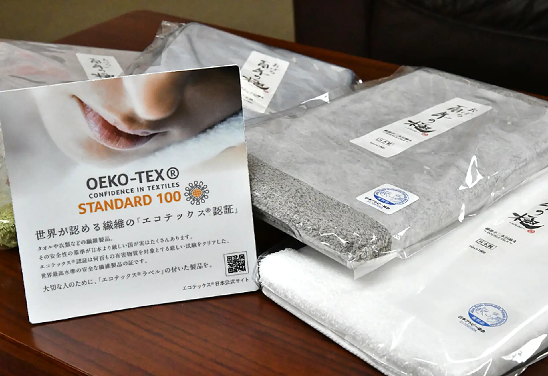 「エコテックスⓇ認証」とは、タオルや衣類などの繊維製品の安全性の証明。