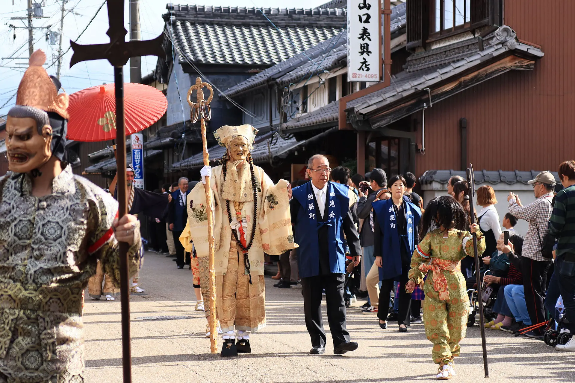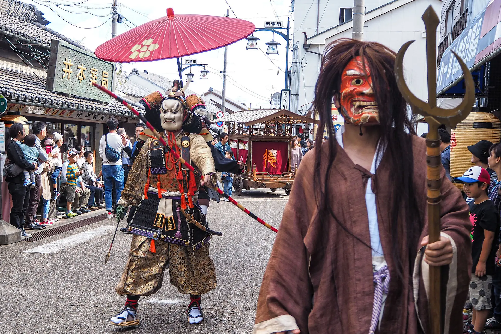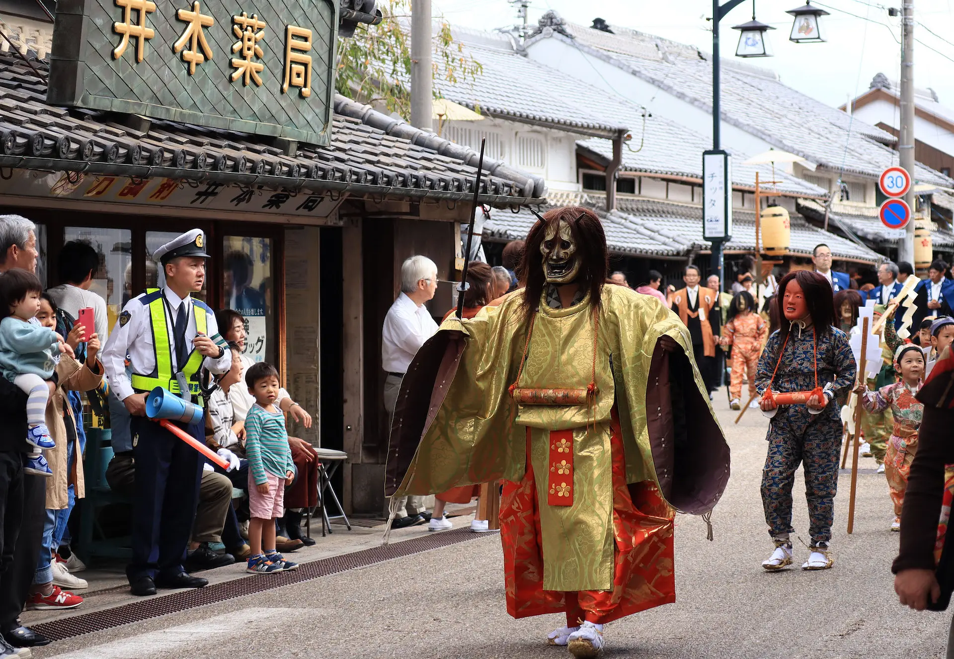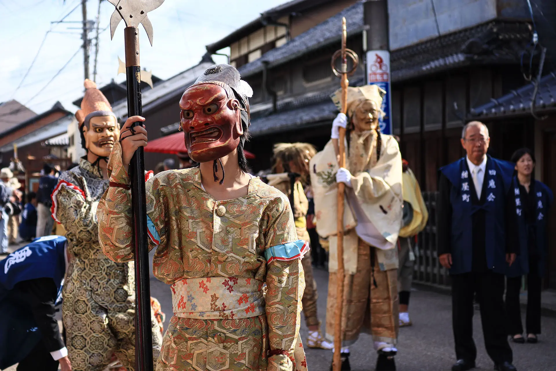 荘厳な御神輿の巡行から百数十体の鬼行列、豪華絢爛で巨大な9基のだんじりなど、続々と城下町を巡行します。そのさまは、まるで歴史映画の中に入ったような大迫力!【取材日:2019年10月】