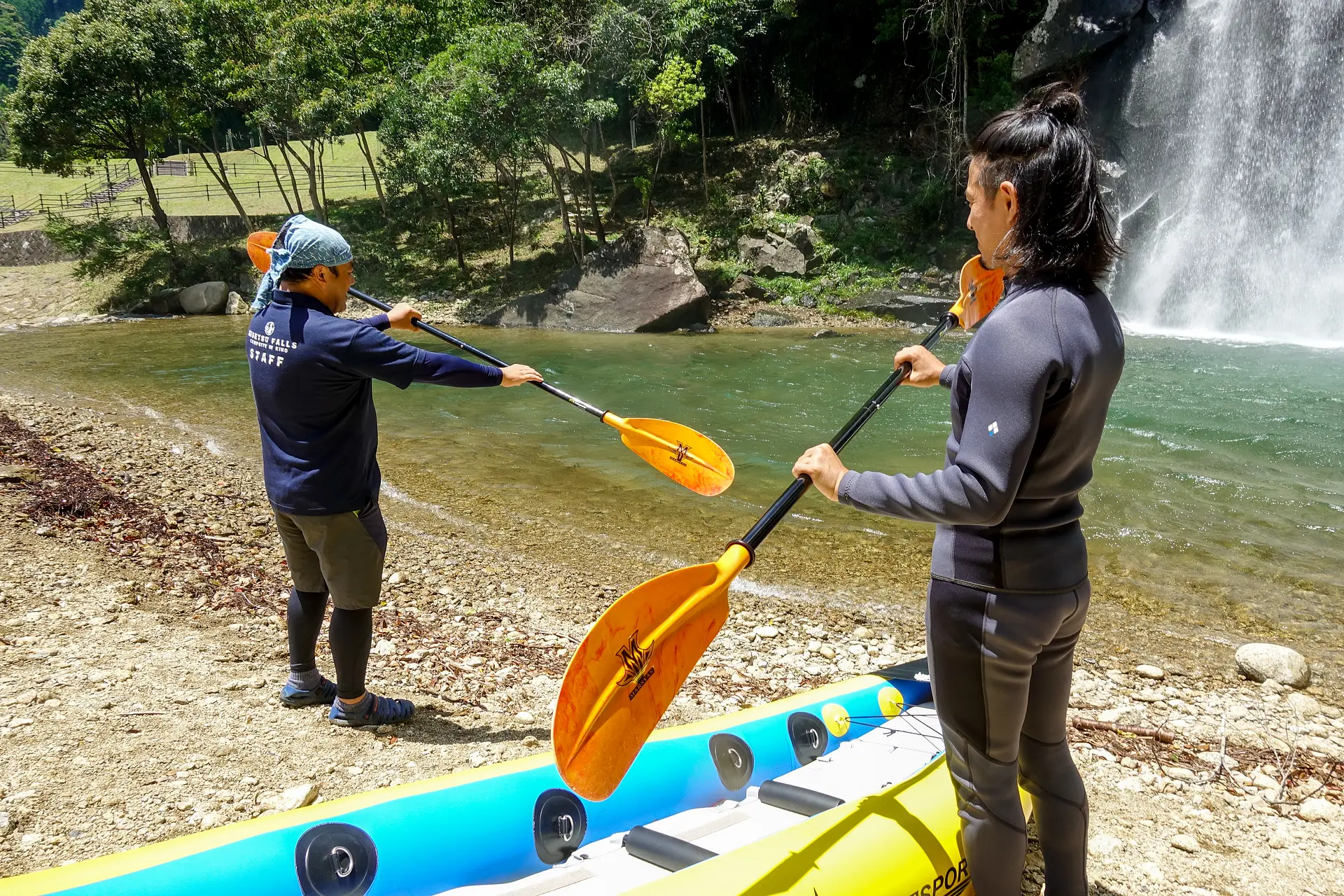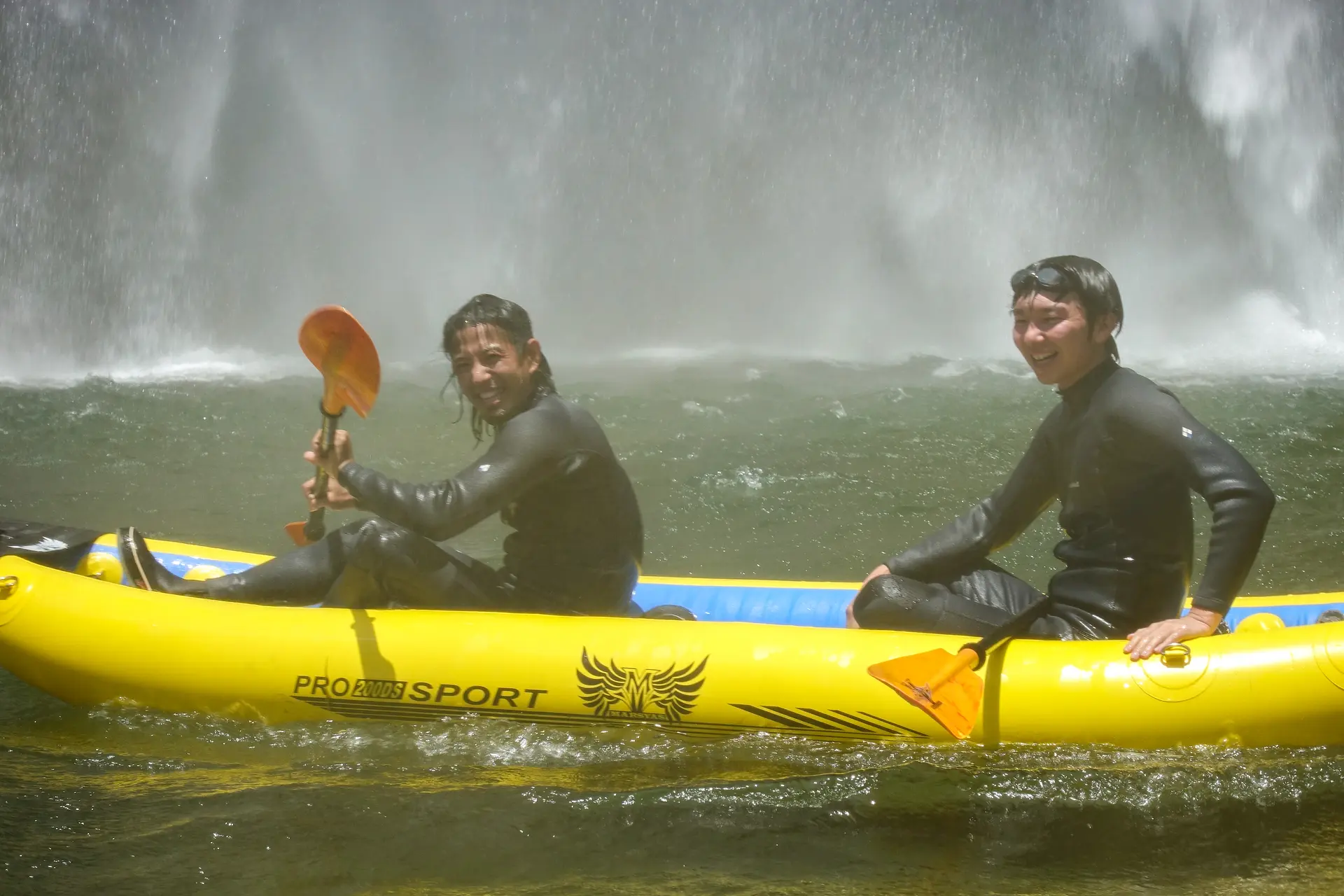 パドル操作がトミーとシンクロします。僕らの気持ちはひとつ!滝に突っ込みたい、ただそれだけです。