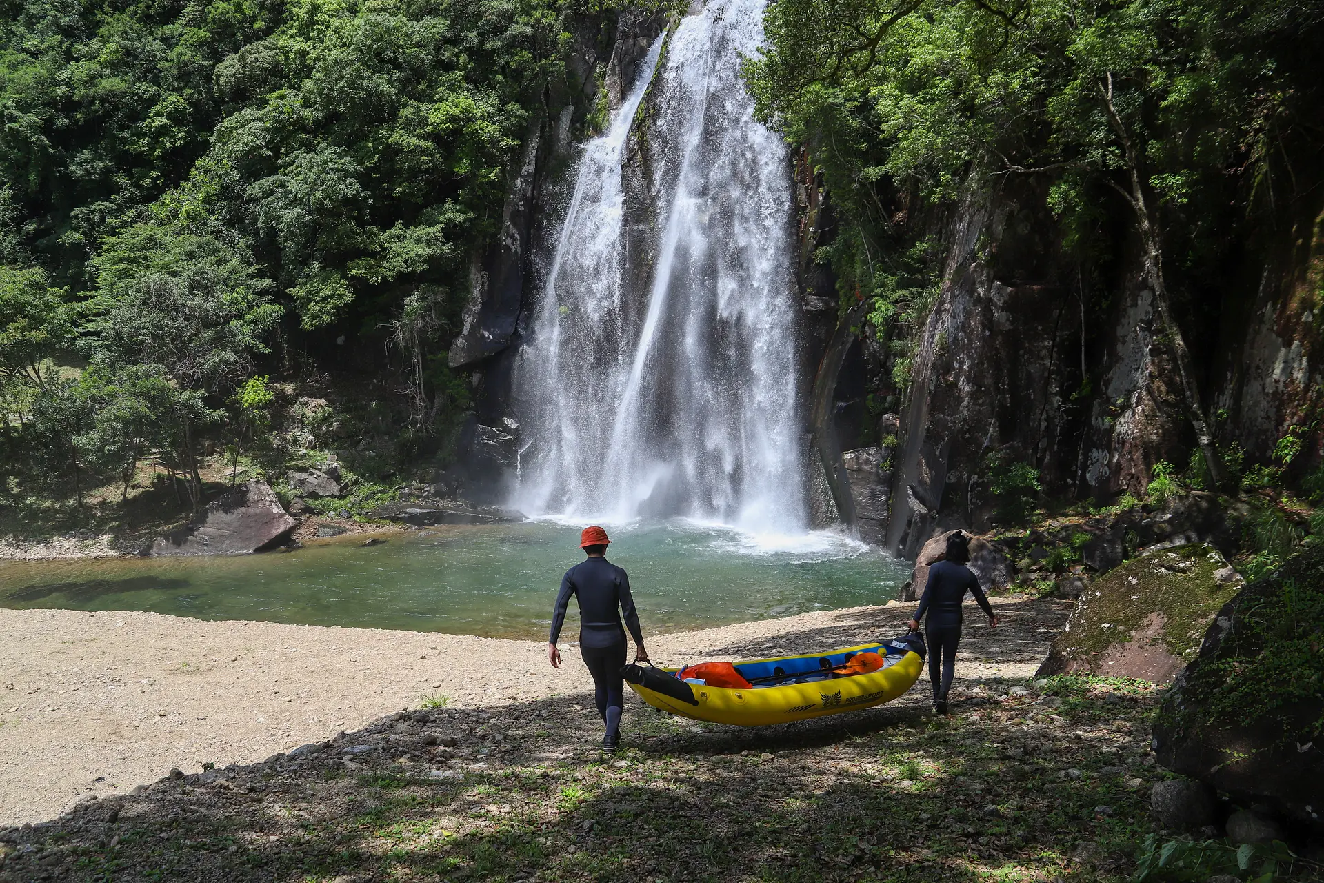 まるで映画のワンシーンのようなロケーション。いざ、滝ダッキーに初挑戦!