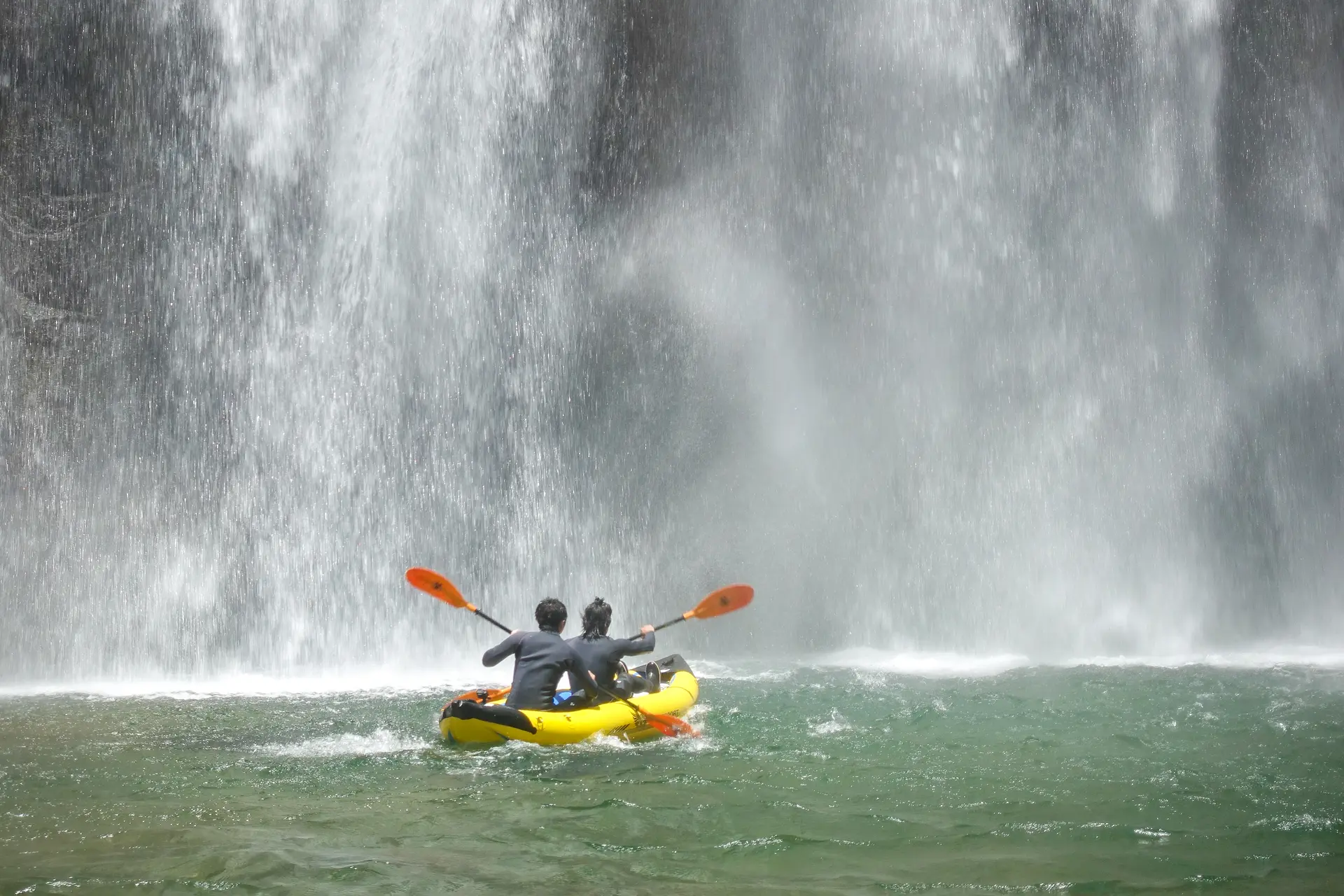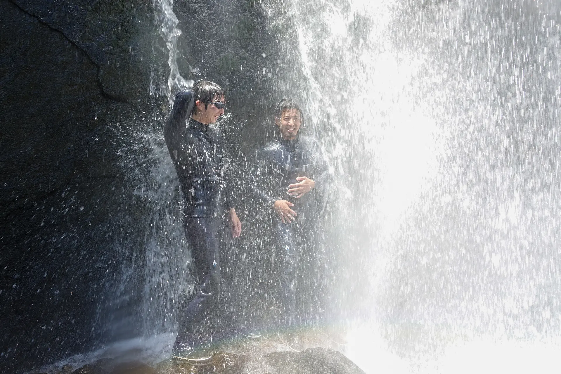 滝の中にいることを忘れてしまう不思議な空間。ダッキーが瀑布によってドラムのようにダンダンダンと音をたてる中、頭の中が空っぽで真っ白になるような爽快感に酔いしれます。