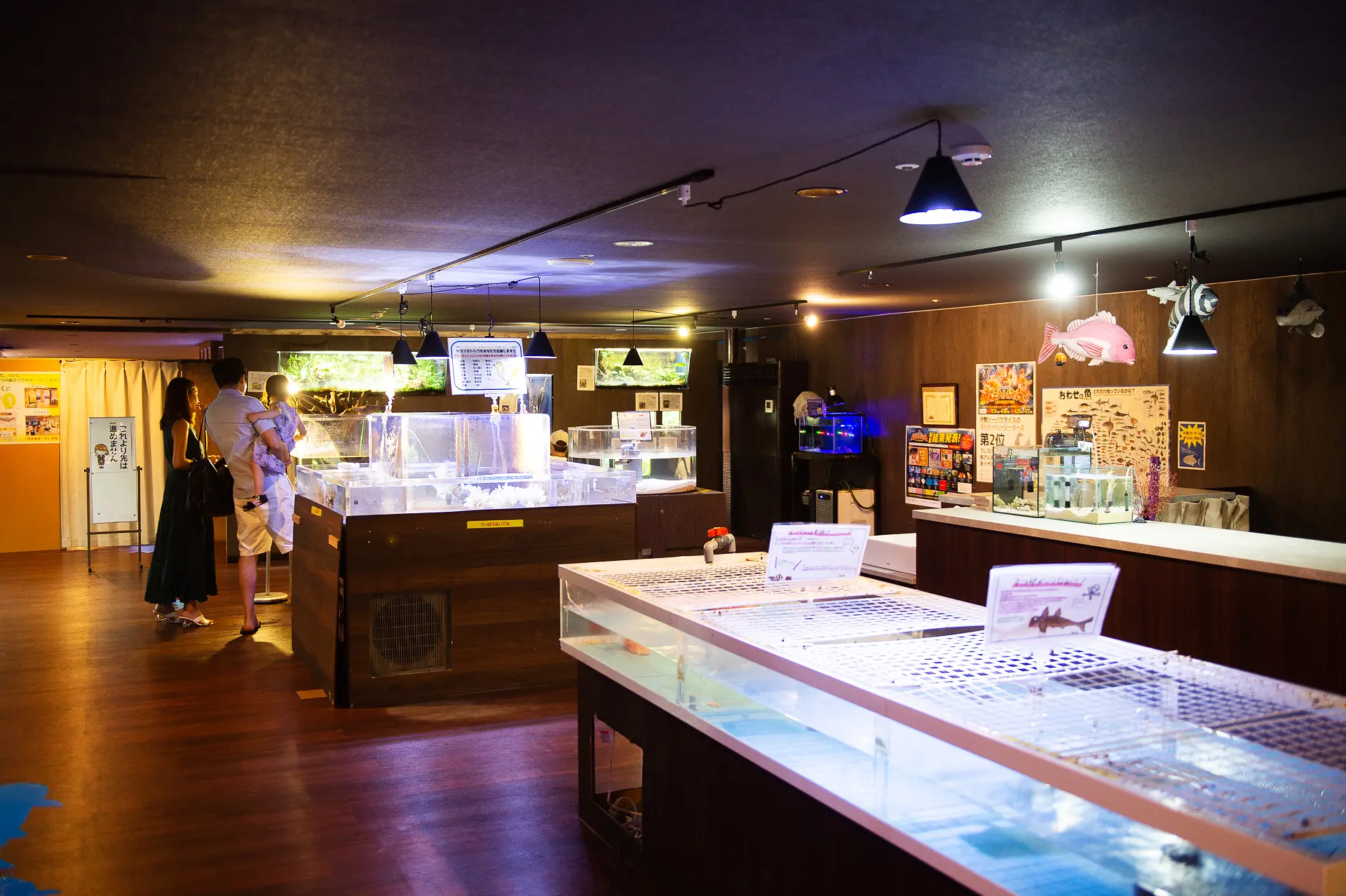 続いては、「ふれあい魚館」へ。ここでは、タツノオトシゴやトビハゼなどが見られます。現在ふれあいはお休みしていますが、魚の生体をじっくり見られるオススメのエリア!