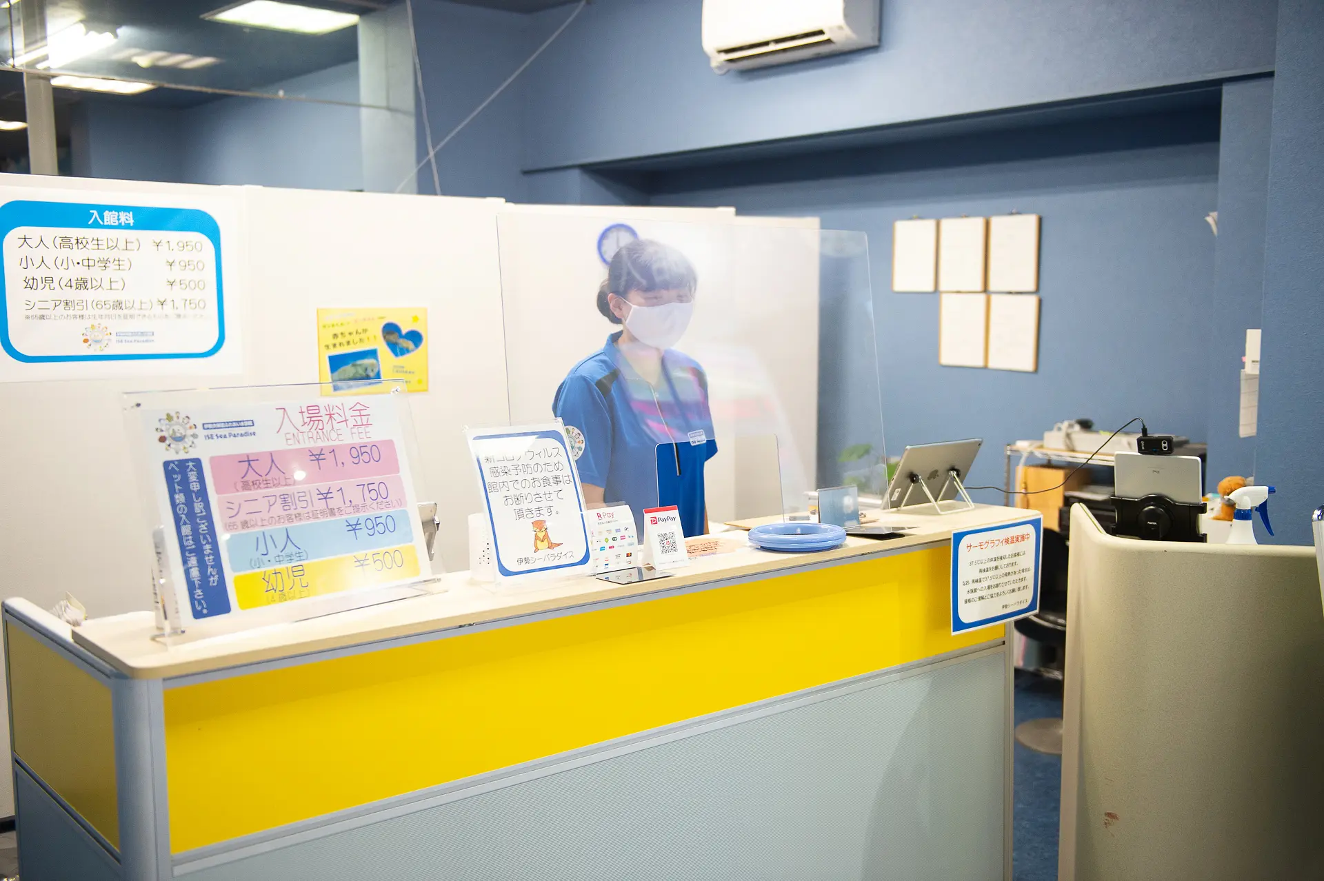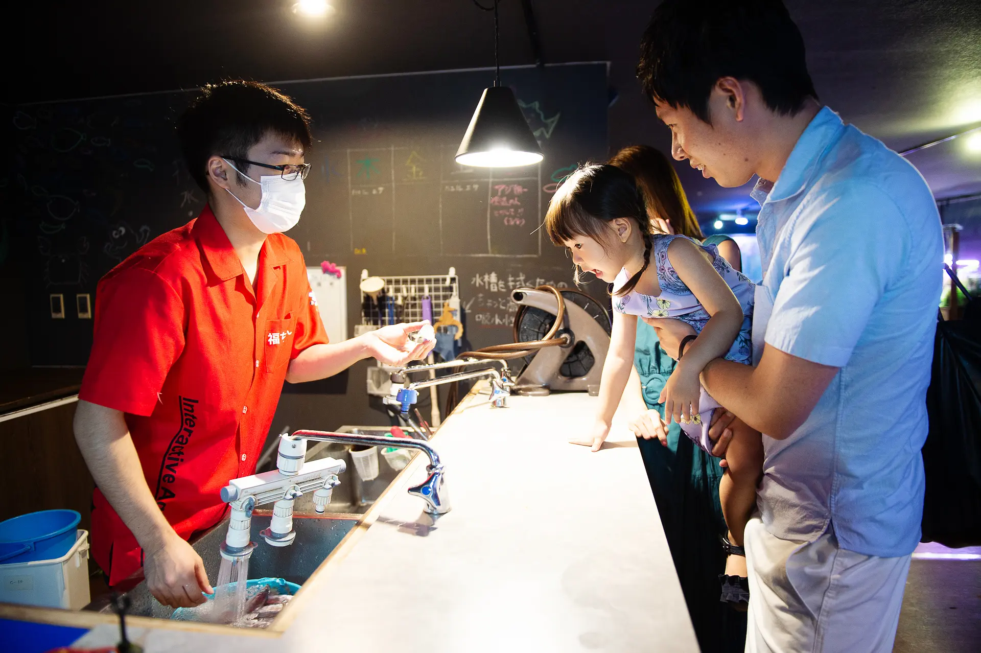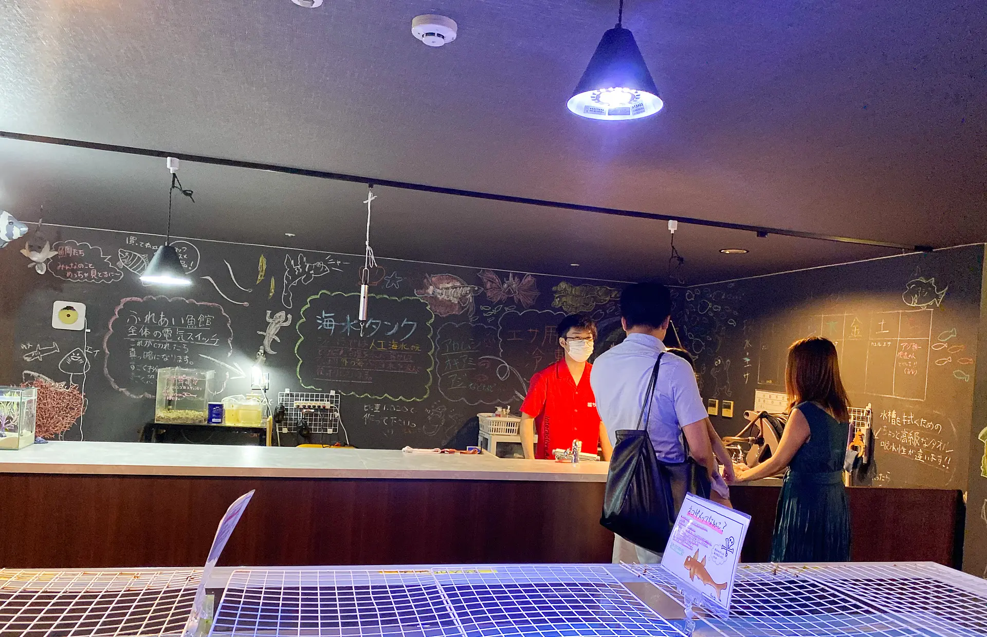 バーのようなおしゃれなカウンターでは飼育員さんが魚のお世話をする様子が見学できます。