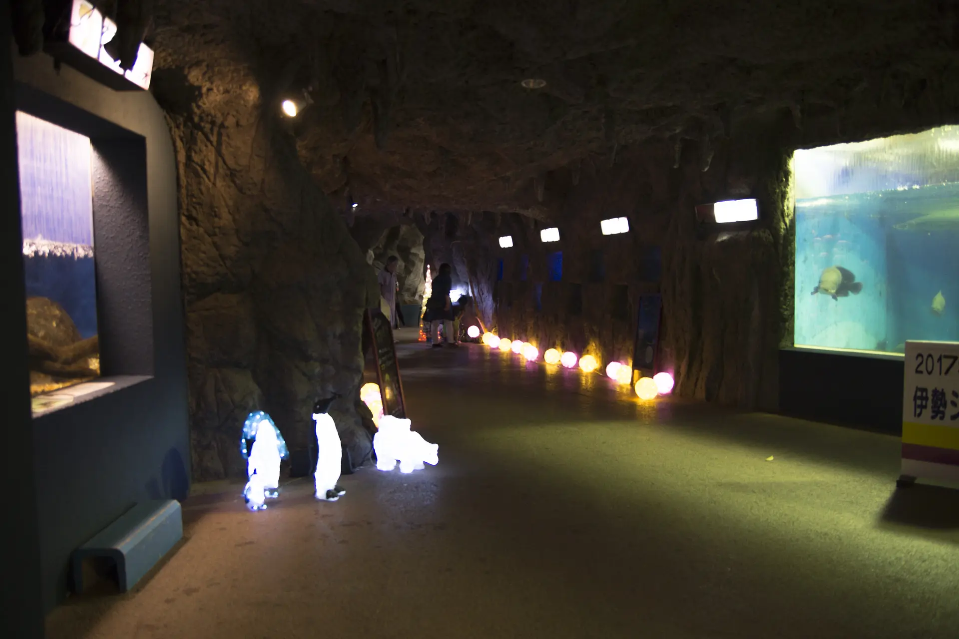 館内のスタートは、まるで洞窟の中にいるような「洞窟水槽エリア」。