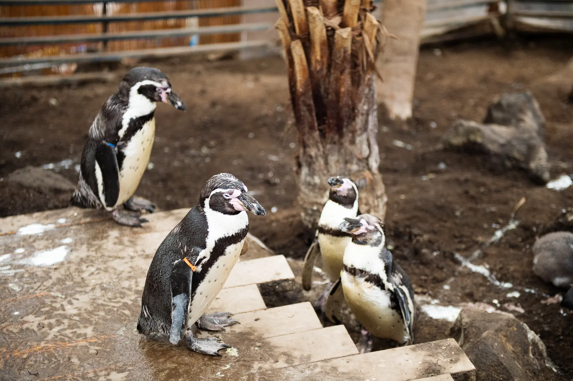 洞窟を抜けると、ヤシの木など植物に囲まれた世界が広がります。元々は植物園だったというこのゾーンは、まるで動物たちが生息する世界に訪れたかのよう。まずはここ、ペンギンの森へ。