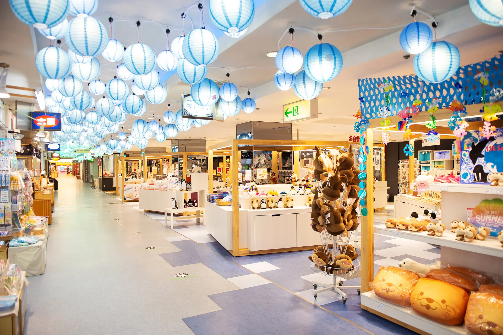 水族館内をたっぷり遊んだら、帰りにぜひ立ち寄ってほしい「伊勢夫婦岩めおと横丁」のお土産売り場。さっき会った動物やお魚たちがモデルのかわいいグッズがズラリ!伊勢志摩のお土産も大充実しています!