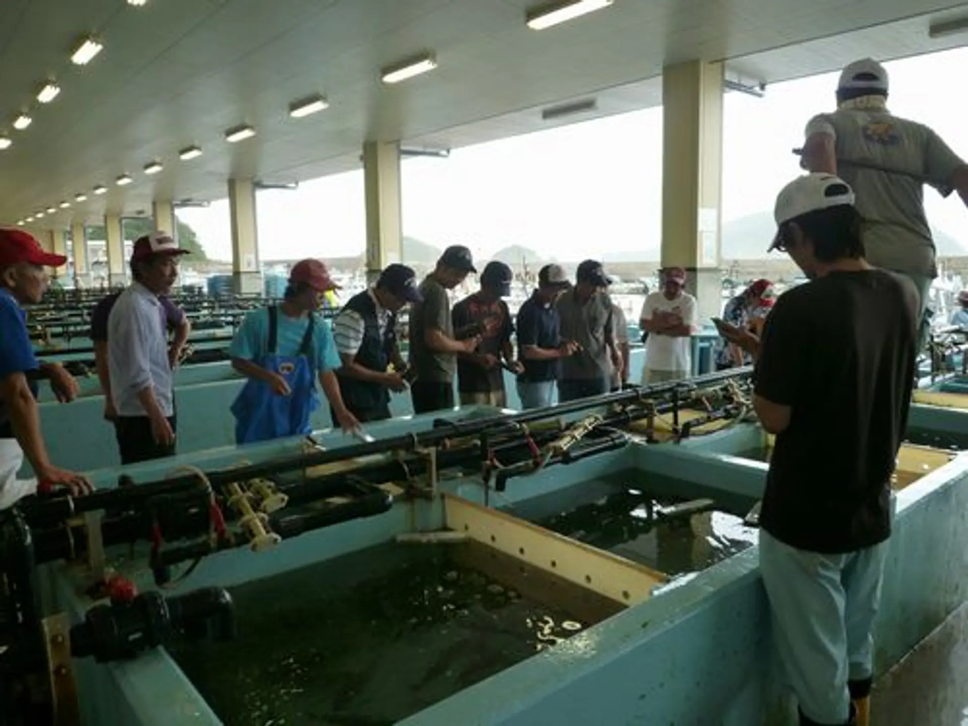 時間がくると、いよいよ競りがスタート。漁協の方の合図で、仲買人さんや宿の方が競り落とします。瞬時に決まり、すごい勢いで、次へ次へと水槽を移動して競りにかけていきます。