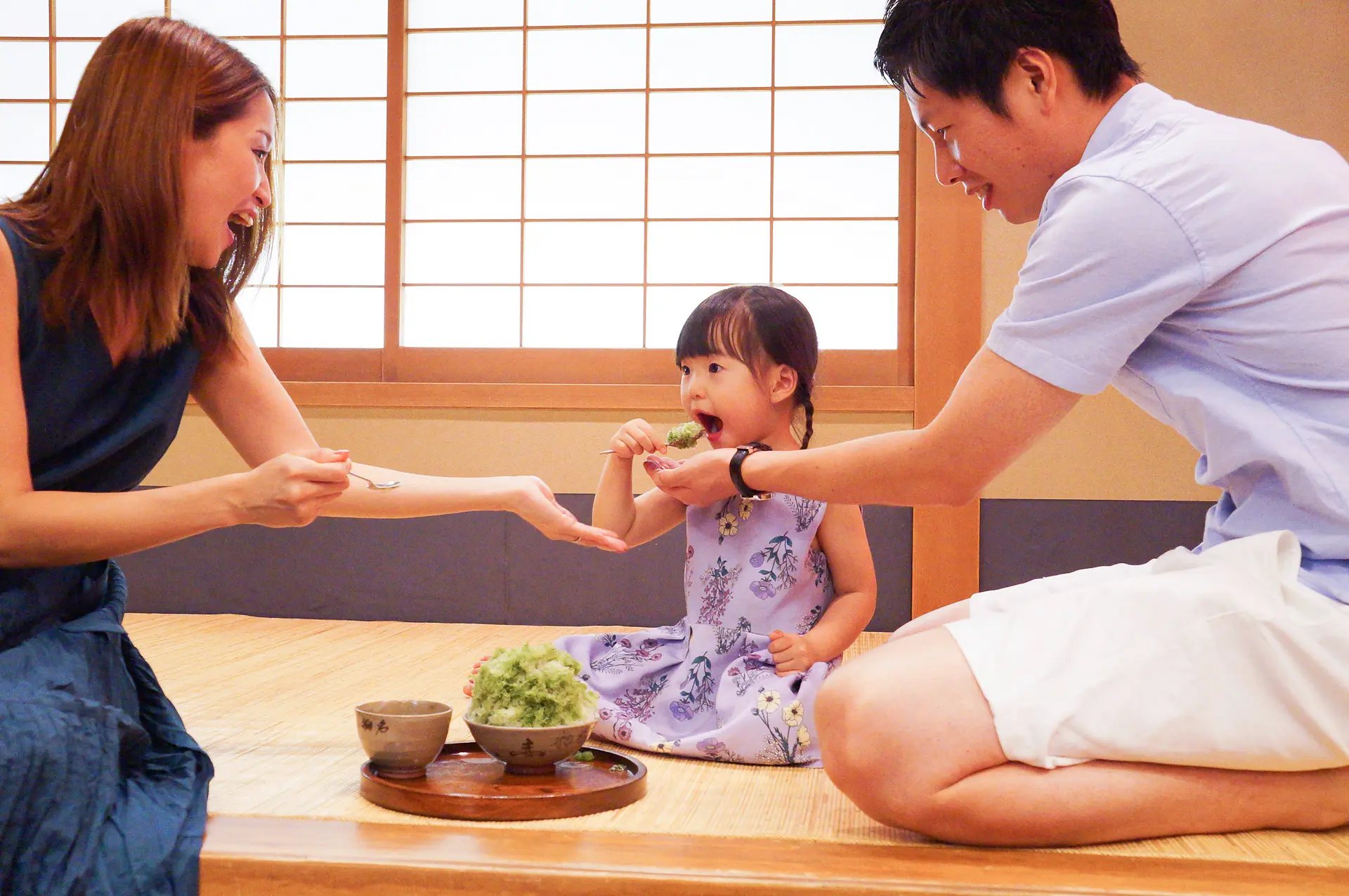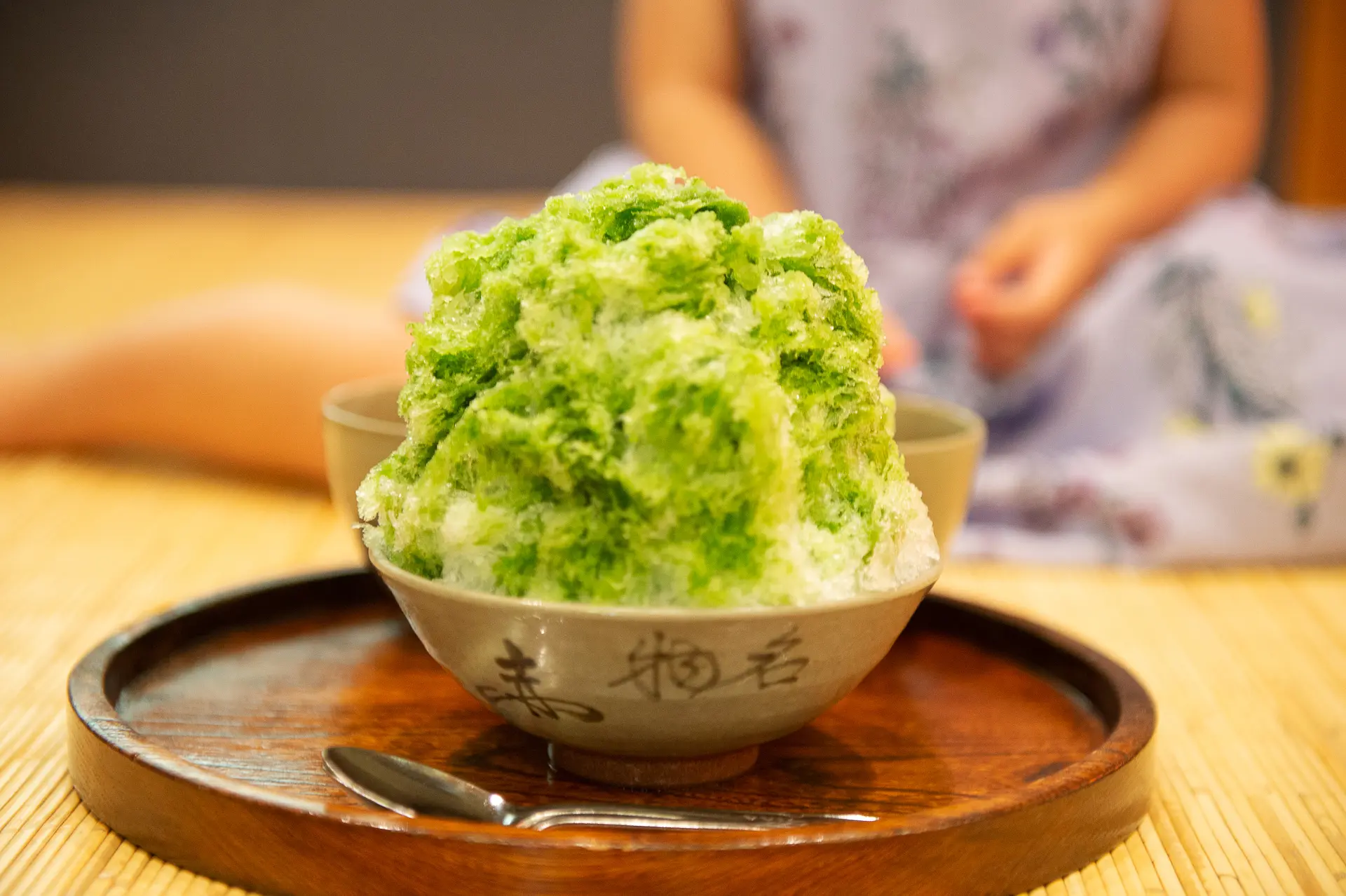暑い日にもぴったりの夏期限定名物「赤福氷」(530円・税込)は、抹茶蜜のかかった氷の中に、餡とお餅が隠れています。