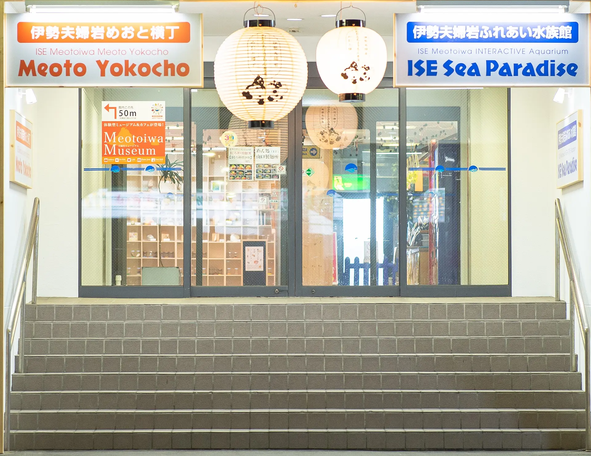 伊勢市伊勢・二見の夫婦円満や良縁のパワースポットとして注目を集める「夫婦岩」に隣接する屋内型お土産ショッピング施設。美味し国伊勢を気軽に楽しめる飲食店や伊勢ならではの体験ができる「めおと岩アクティビティ」が人気の屋内施設です。 また、生き物たちと ”ゼロ距離” でふれあえる水族館「伊勢シーパラダイス」が併設されています。 めおと横丁のコンセプトは「伊勢ならではの体験」 めおと横丁でしか体験出来ない、伊勢ならではの特別な時間を、旅の思い出作りに人気の「伊勢木綿御朱印帳作り体験」「伊勢苔玉作り体験」等のアクテビティや、地元の食材を利用した飲食店で「美味し国 伊勢」を体験する伊勢食巡り等、“伊勢ならではの体験”をコンセプトにしています。