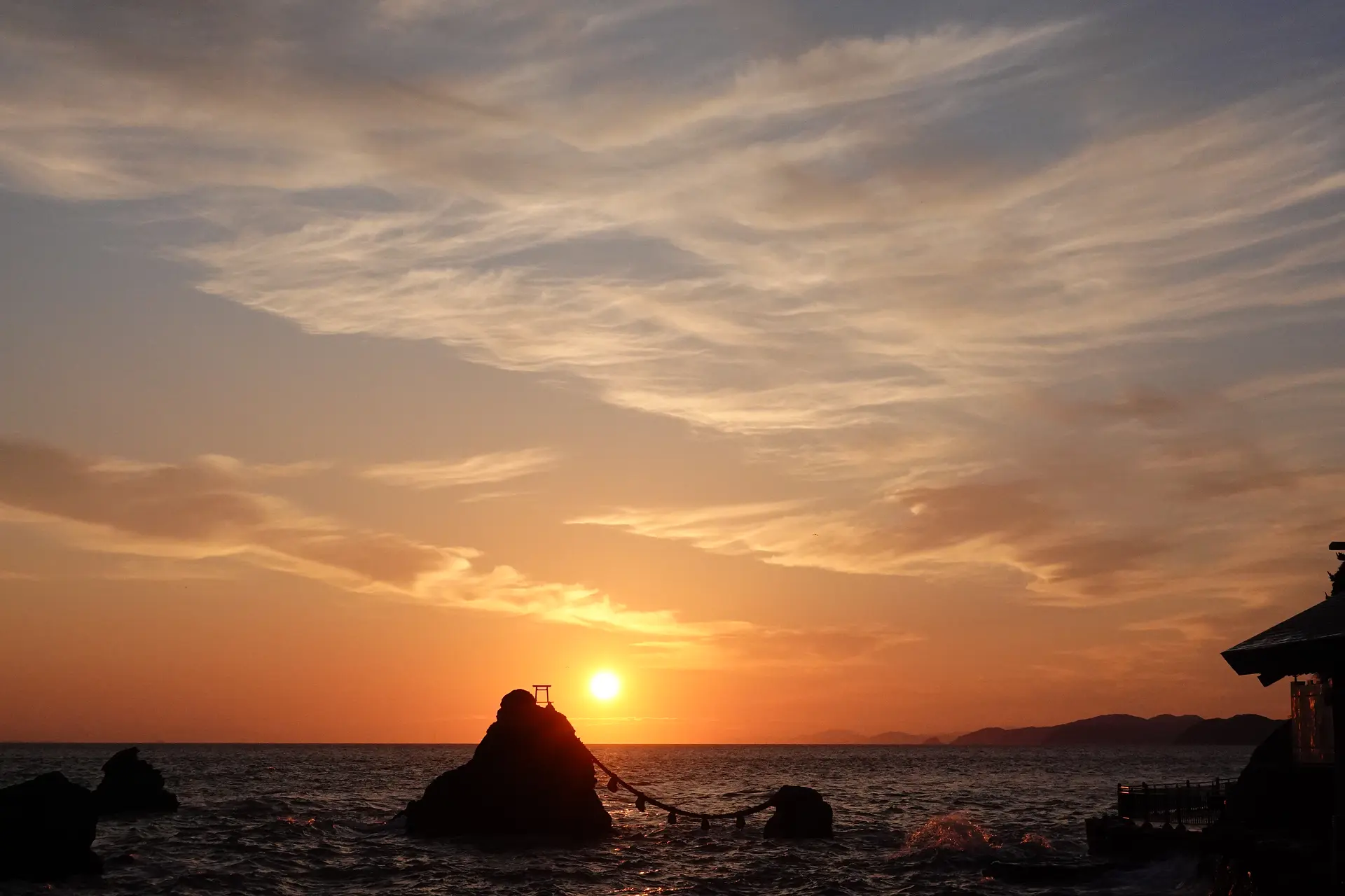 夫婦岩の取材レポートはこちら!:夫婦岩のそびえる禊の浜、お伊勢参りする前に二見興玉神社で心と体を浄化しよう!