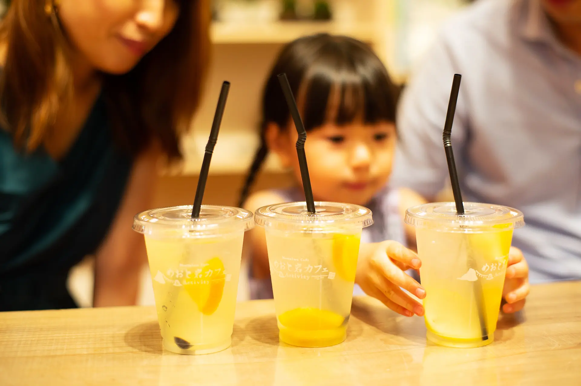 「めおと岩カフェ」では、体験のほかにドリンクなどを楽しむこともできます。