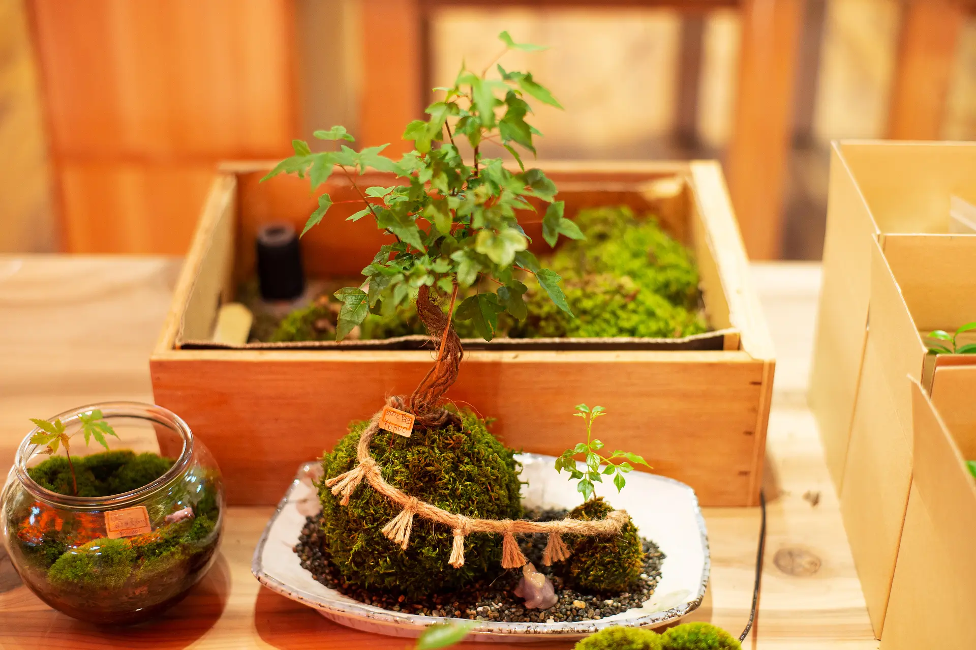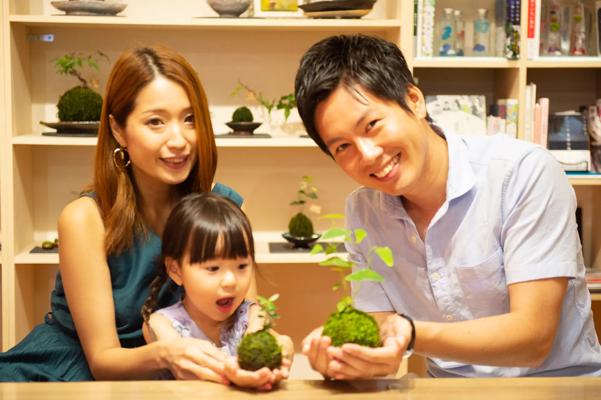 協力して一緒に作り上げた苔玉に、愛着が湧くこと間違いなし!夫婦やカップルにも人気のメニューです。
