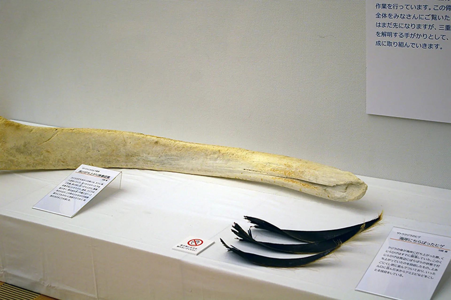 なんと、去年の11月に三重県紀北町に打ち上げられた「ザトウクジラ」の骨なんです。
