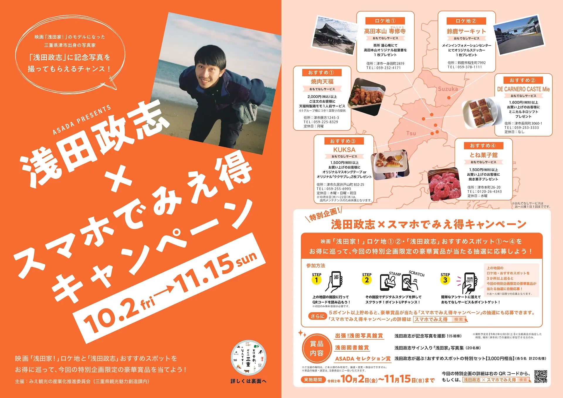 期間限定の特別企画!浅田政志×「スマホでみえ得キャンペーン」でお得に巡って、豪華賞品が当たるかも?みなさんもぜひご参加ください!!