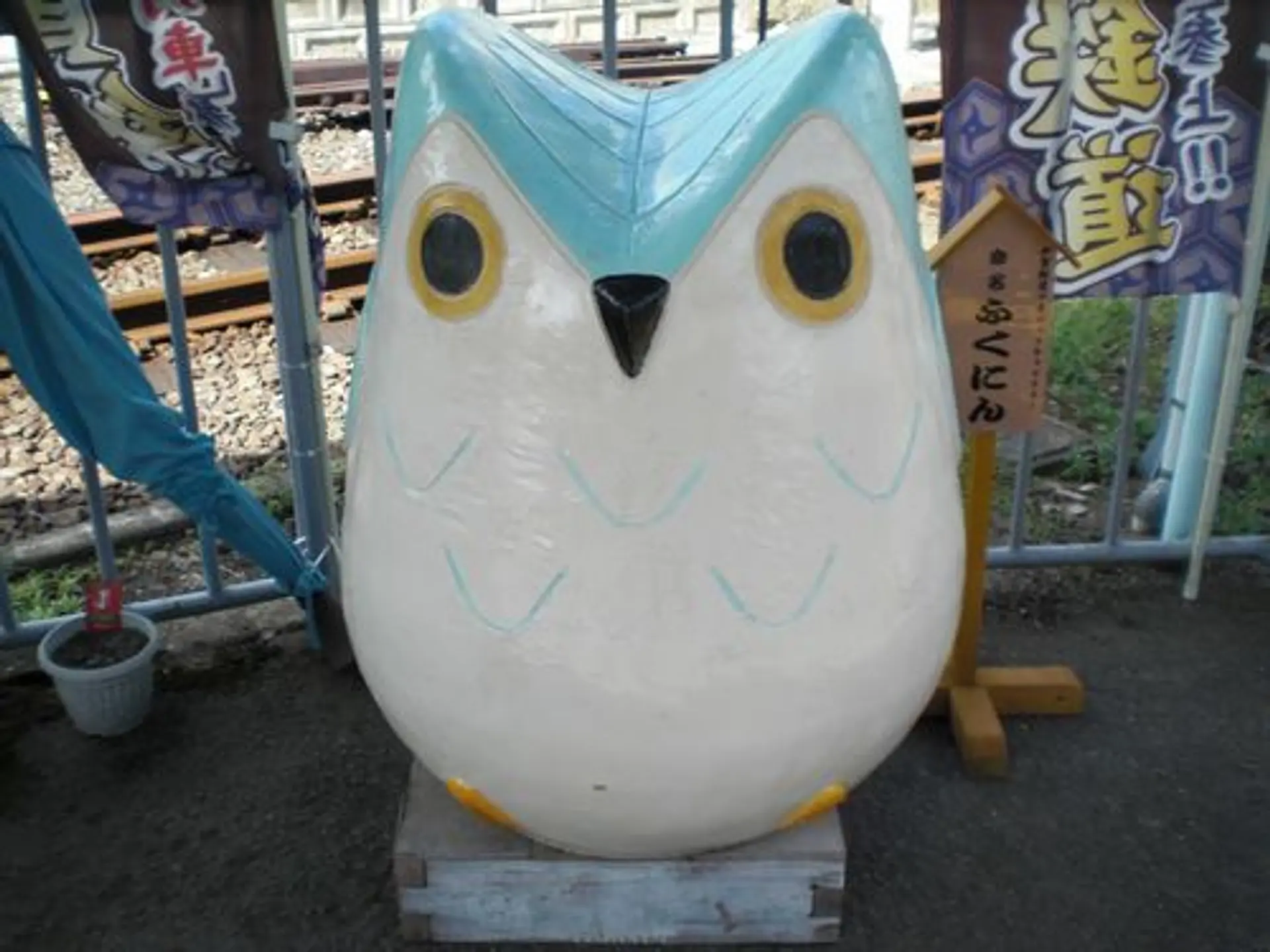 上野市駅に着くと、伊賀鉄道マスコットキャラクターの「ふくにん」と一緒に、いろんなところに忍者が潜んでいました。また、伊賀市のマスコット「にん太としのぶ」もお出迎え。さすが忍者の里です。