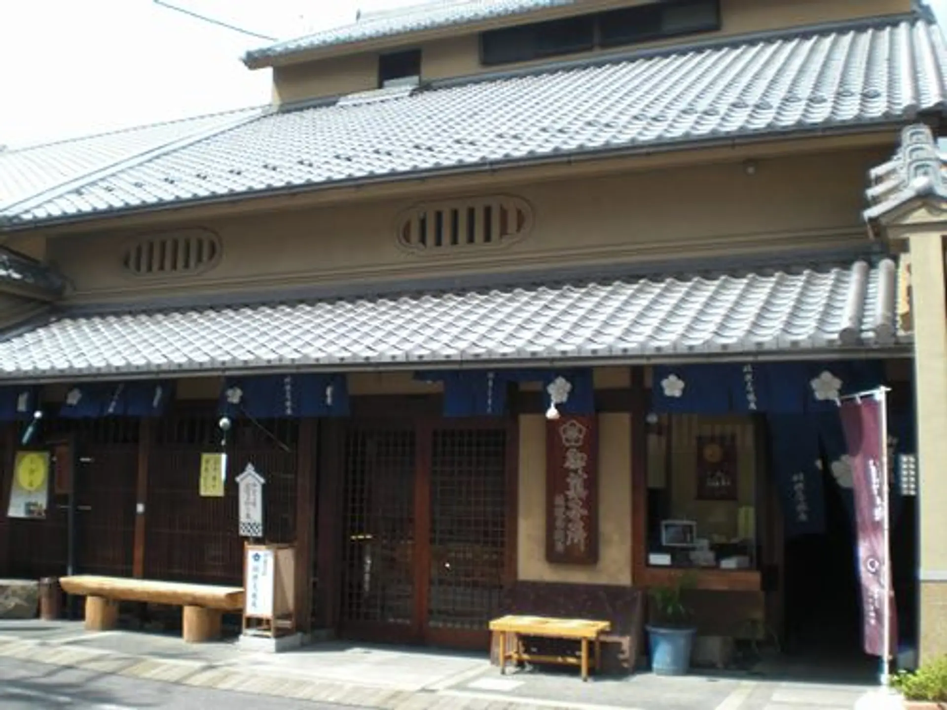 まずは「御菓子司おおにし」。店先の長椅子、伊賀名物・丁稚ようかんと忍者最中をいただきました。
