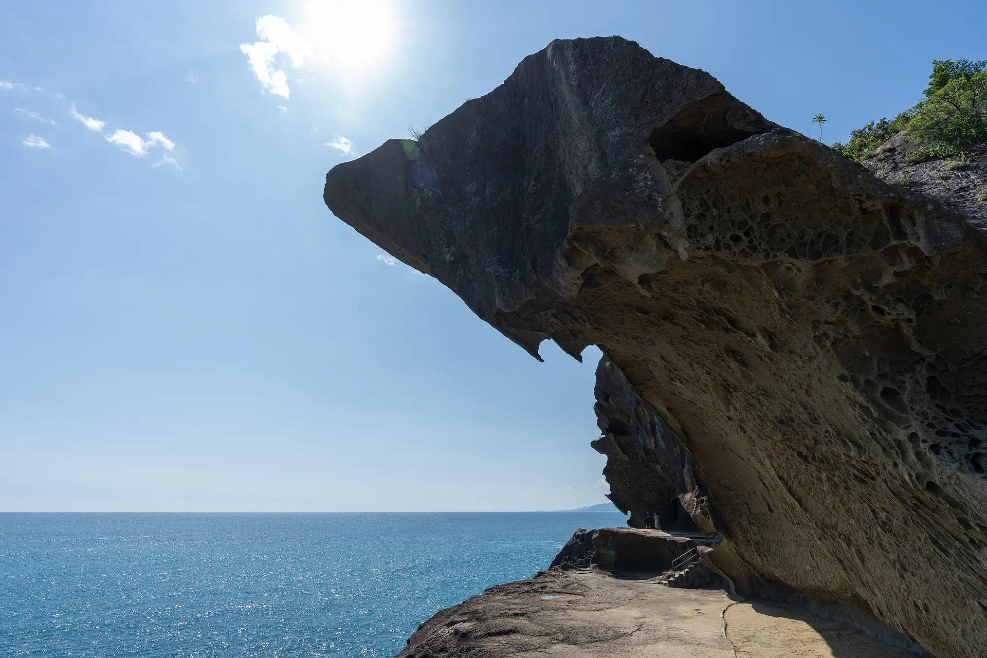 波による侵食や、大地震による土地の隆起により、見上げるばかりの大きな奇岩や、大小無数の洞窟などが海沿いに連なっています。約1.2kmにわたる遊歩道から見ることができる千変万化な光景は、まさに驚くばかりのスケールです。