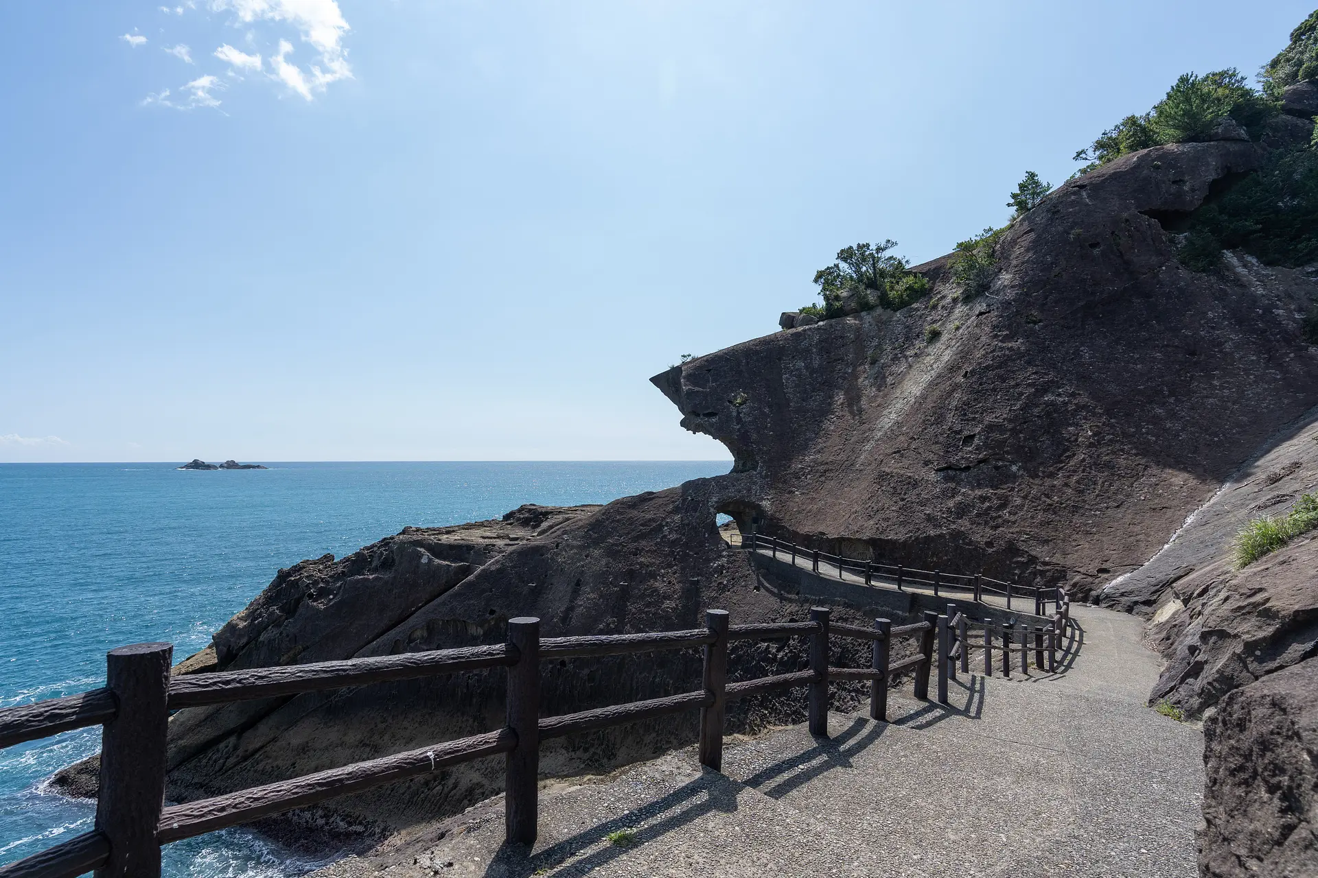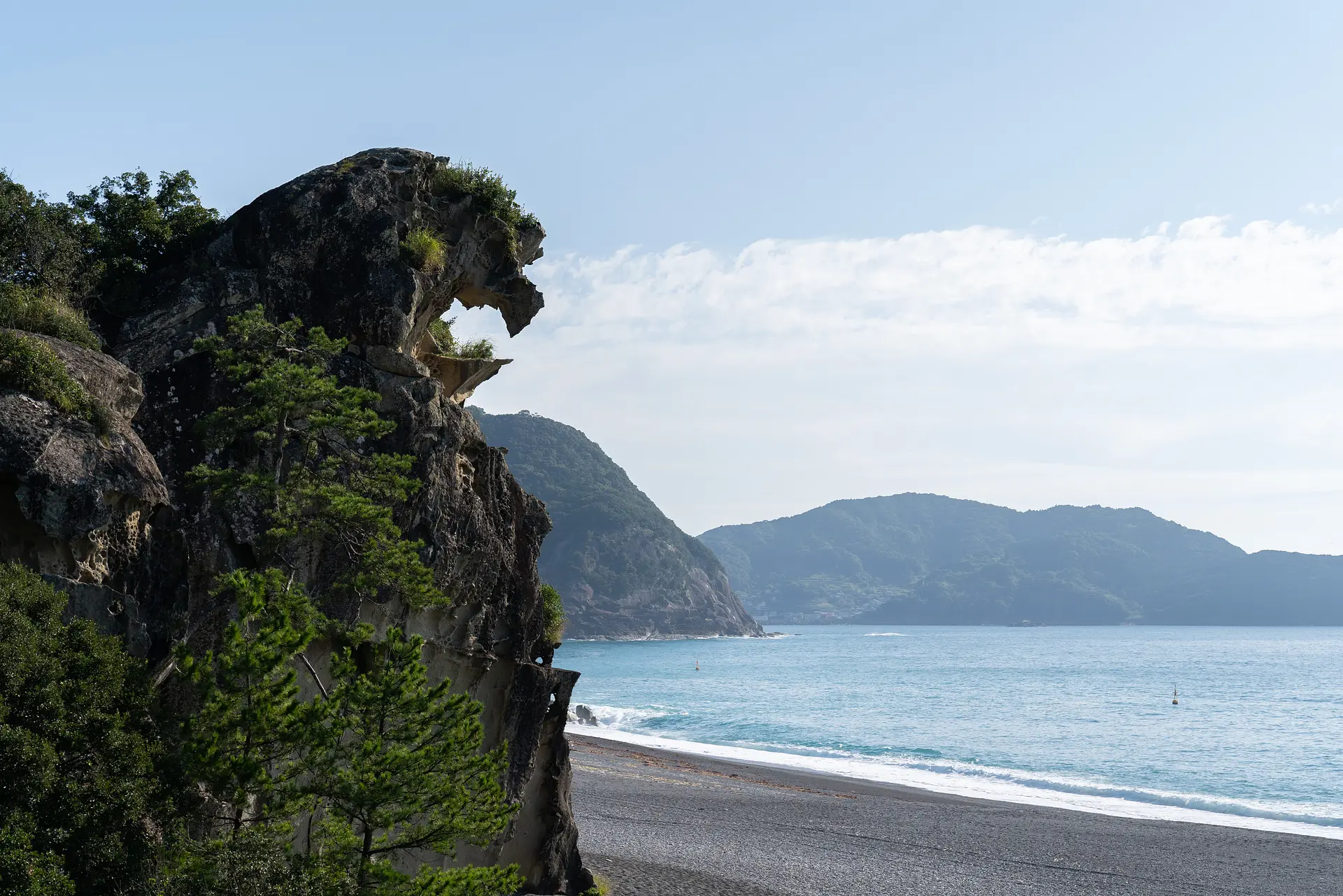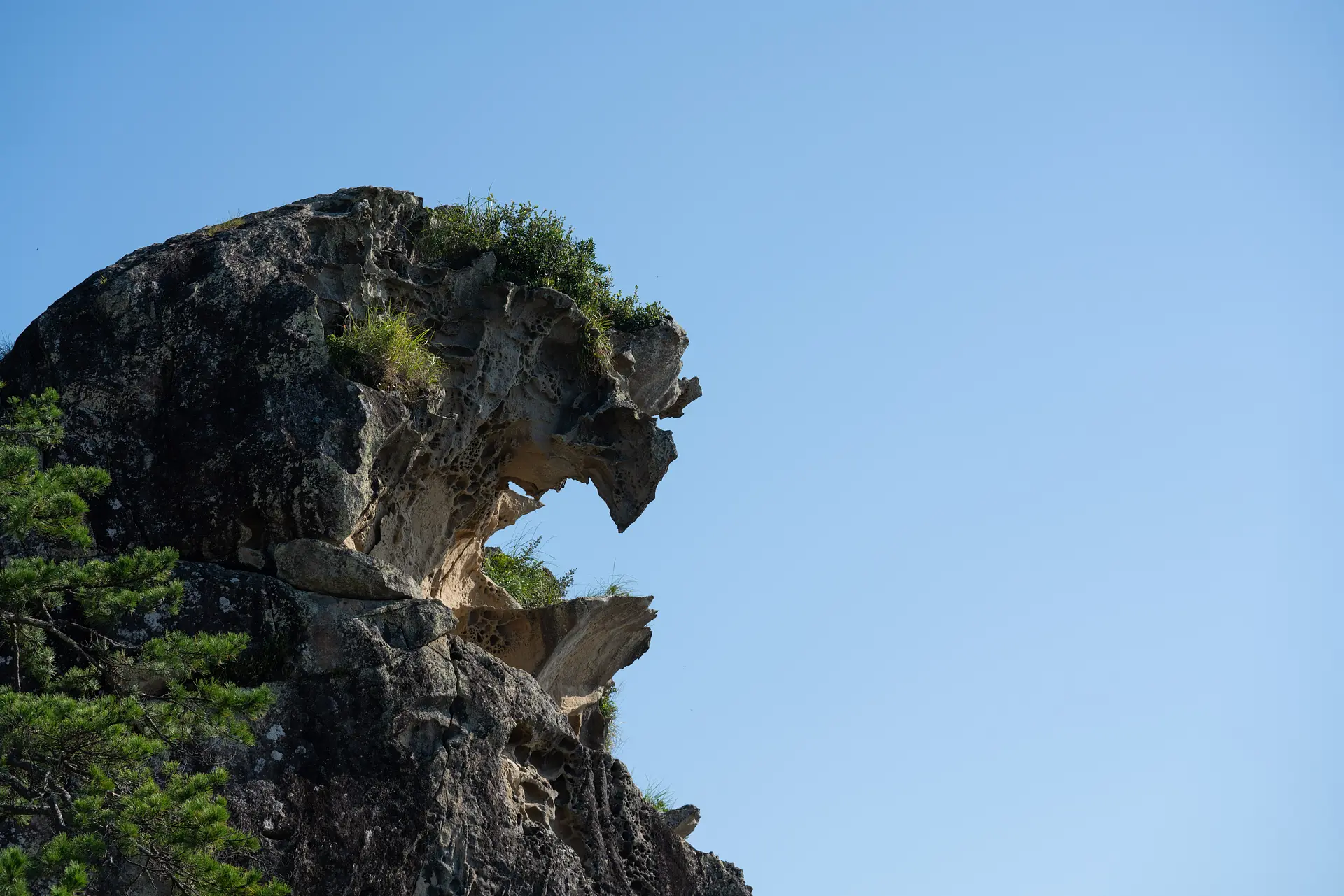 地盤の隆起や海蝕現象が原因だと言われていますが、よくこんな形状になるものですね。まさに自然が造りあげた芸術品。「日本のスフィンクス」とも呼ばれており、国の名勝や日本百景にも選ばれています。