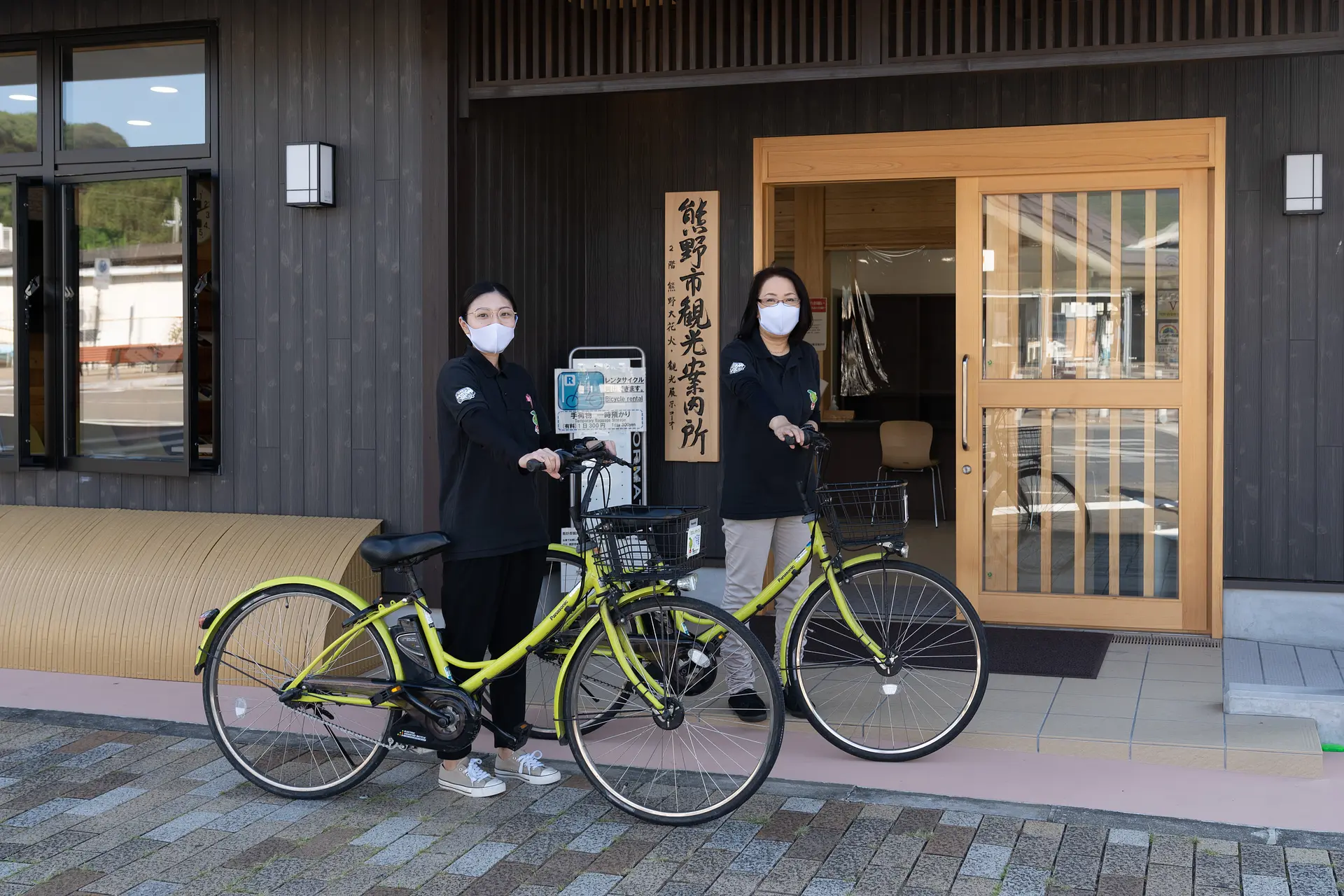 車で効率よく回るのもよいですが、今回は熊野の風と陽光を浴びながら走りつつ、寄り道も気軽にできるレンタサイクルで移動します。また、長い距離や坂道もラクラク走ることができる電動アシスト付きをチョイスしました。観光客からも好評らしく、今後レンタサイクルはすべて電動アシストタイプに変えていく予定だとか。では、いよいよ出発です!