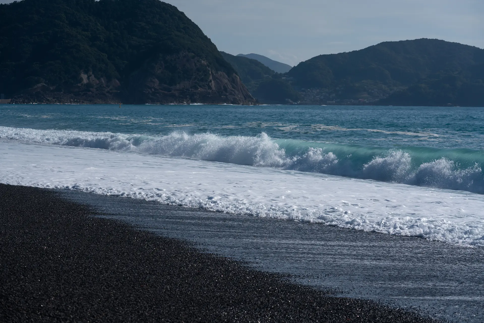 静まり返った砂浜に響く、寄せては引いていく熊野灘の波の音が、心地よいリズムとなって心に深く染み入ってきます。