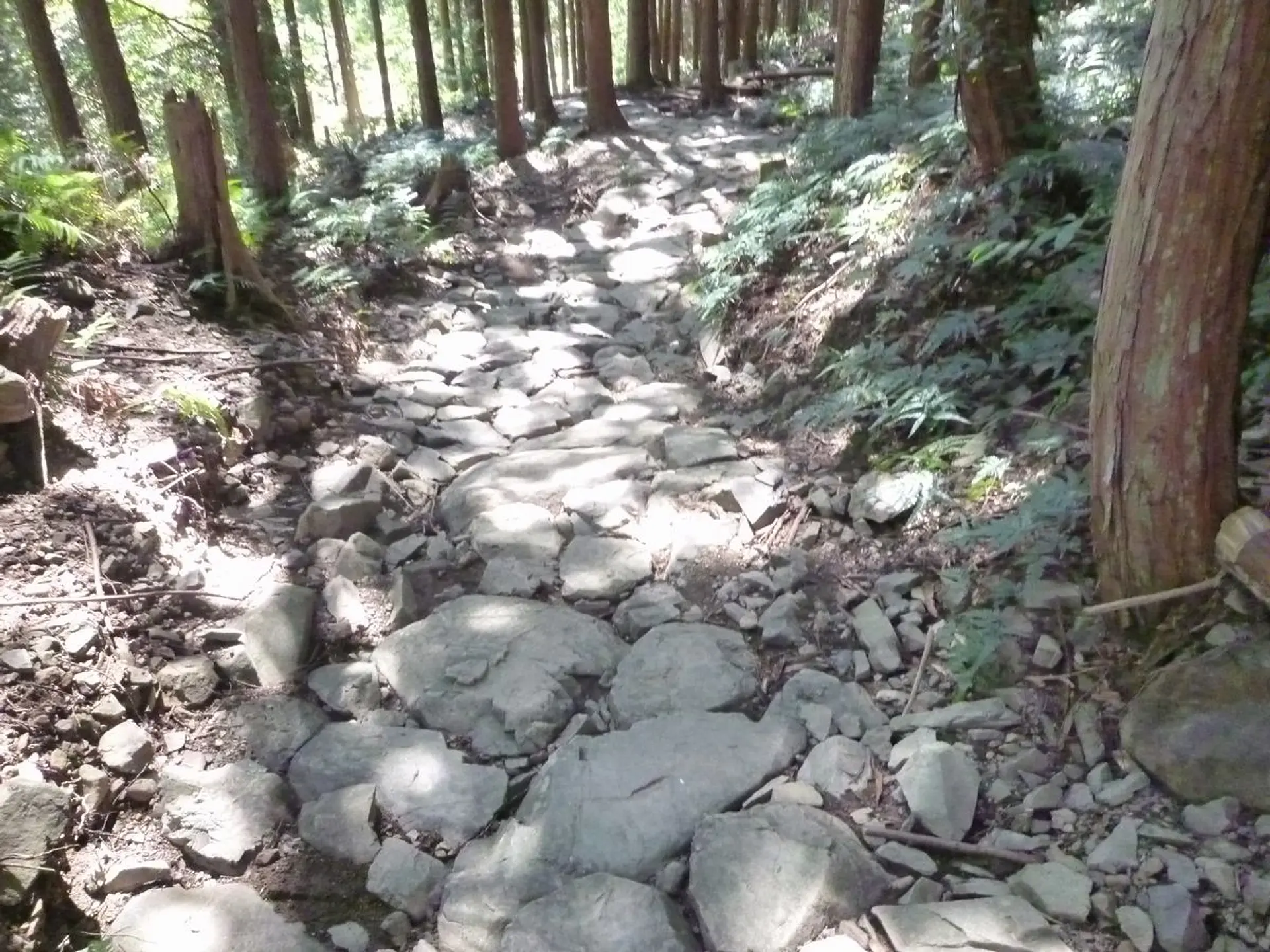 途中、古道の斜面を石積みしてあるところ、最後の方は、石畳が残る古道が続き、とっても趣がありました。40分ほどで登山口に到着。
