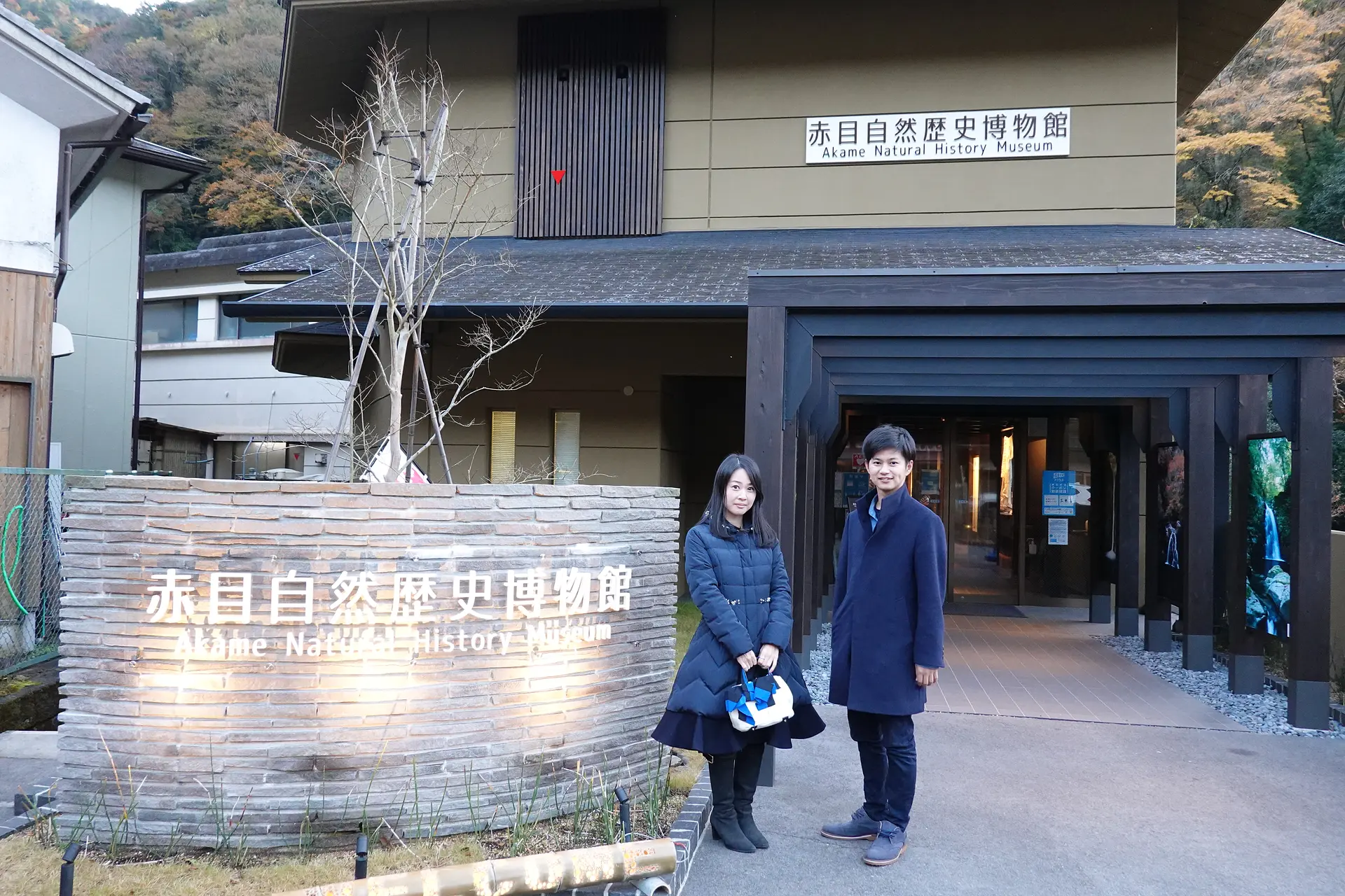 今年(2020年)オープンしたばかりの「赤目自然歴史博物館」の前で記念撮影。