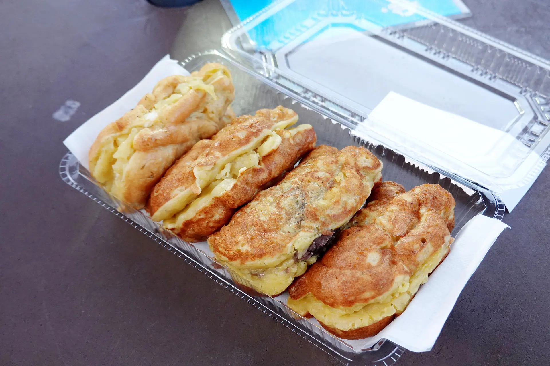 全7種類の中から欲張って、さつまいも生地のみの「プレーン」、中にそれぞれ「粒あん」「りんご」「クリームチーズとクランベリー」が入った4種類を購入。