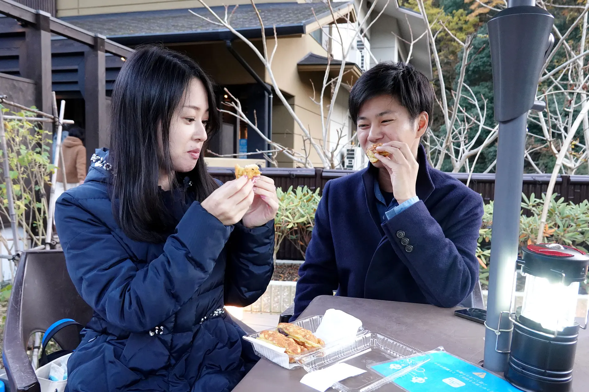 なんといっても、やさしい甘みの生地がおいしい! そして、どの食材とも相性がよく、二人でペロリと完食!
