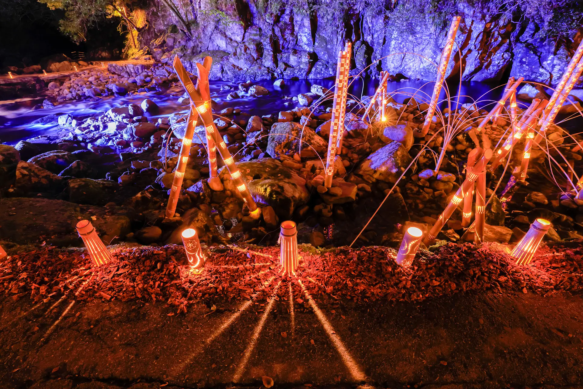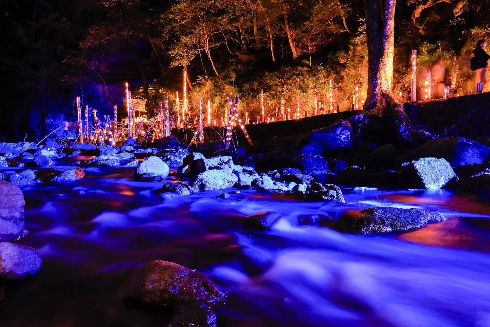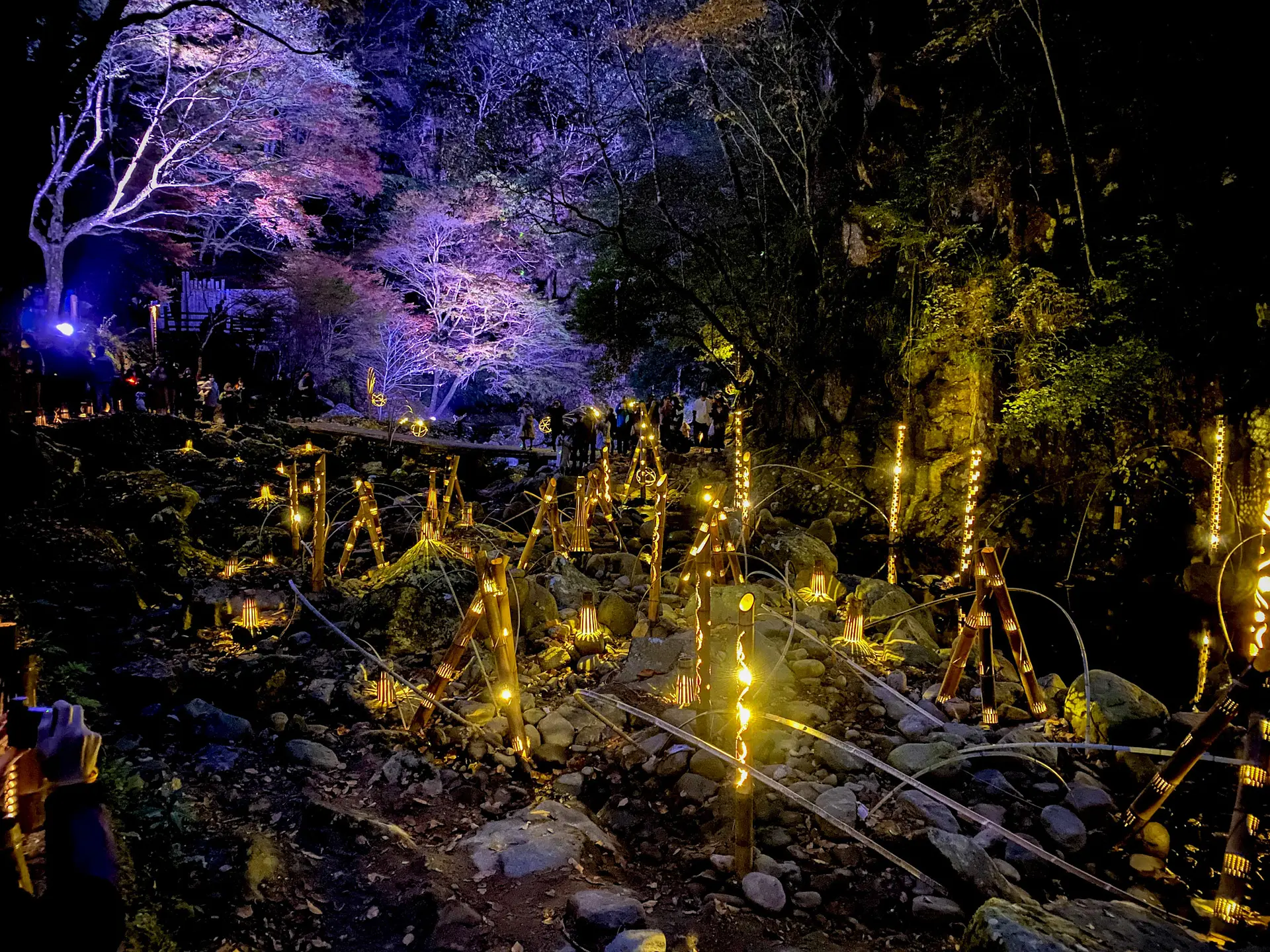 赤目四十八滝渓谷の新しいライトアップ 「幽玄の竹灯」は幻想的で別格の美しさ!