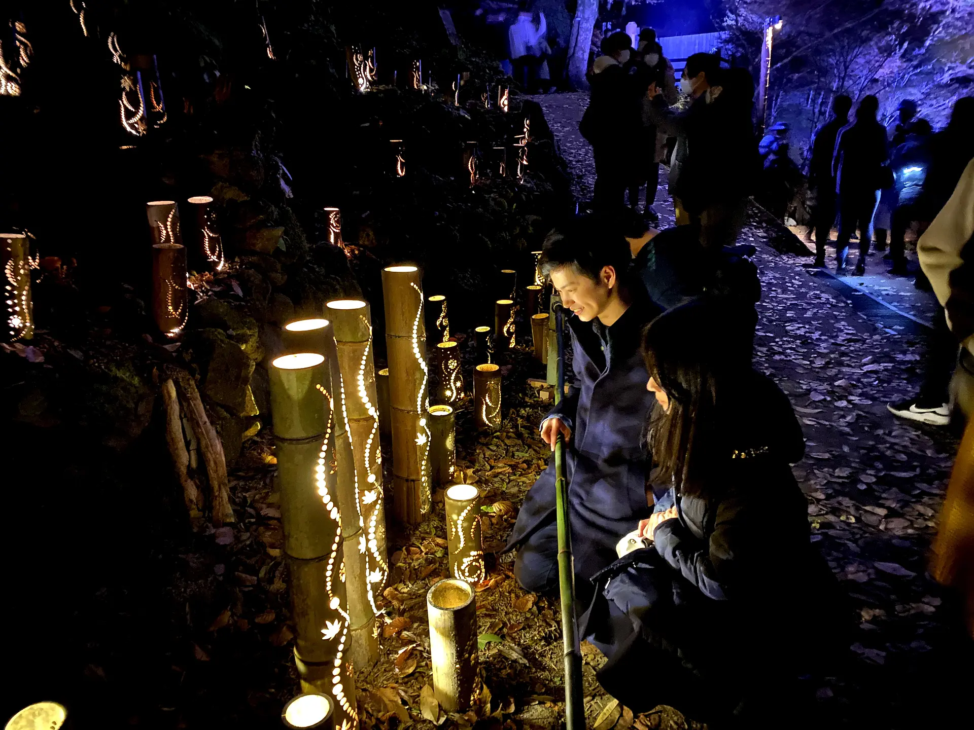 昨年までのライトアップは竹灯が約150本でしたが、「幽玄の竹灯」では約1000本にバージョンアップ!周辺のお客さんからも「きれい~」という声が次々に聞こえてきます。その気持ち、よくわかります!思わず声が出ちゃうくらいの絶景です。