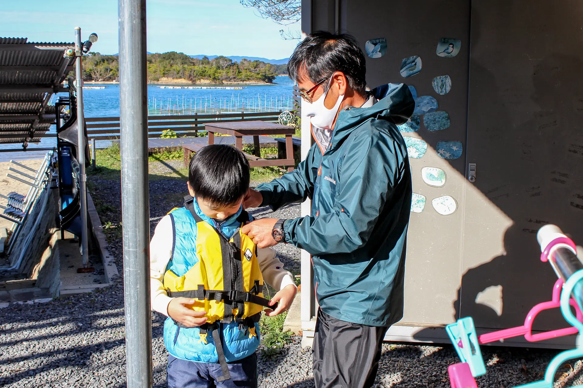 志摩市大王町のともやま公園内にある「志摩自然学校」。志摩市の象徴的な眺め「リアス海岸」を特徴とする波穏やかな英虞湾(あごわん)に面した環境で、自然とふれあうさまざまな体験プログラムを行っています。中でも一番人気というシーカヤックツアーは、初心者でも挑戦しやすい海上アクティビティー。さっそく、ファミリーと一緒に挑戦してきました!