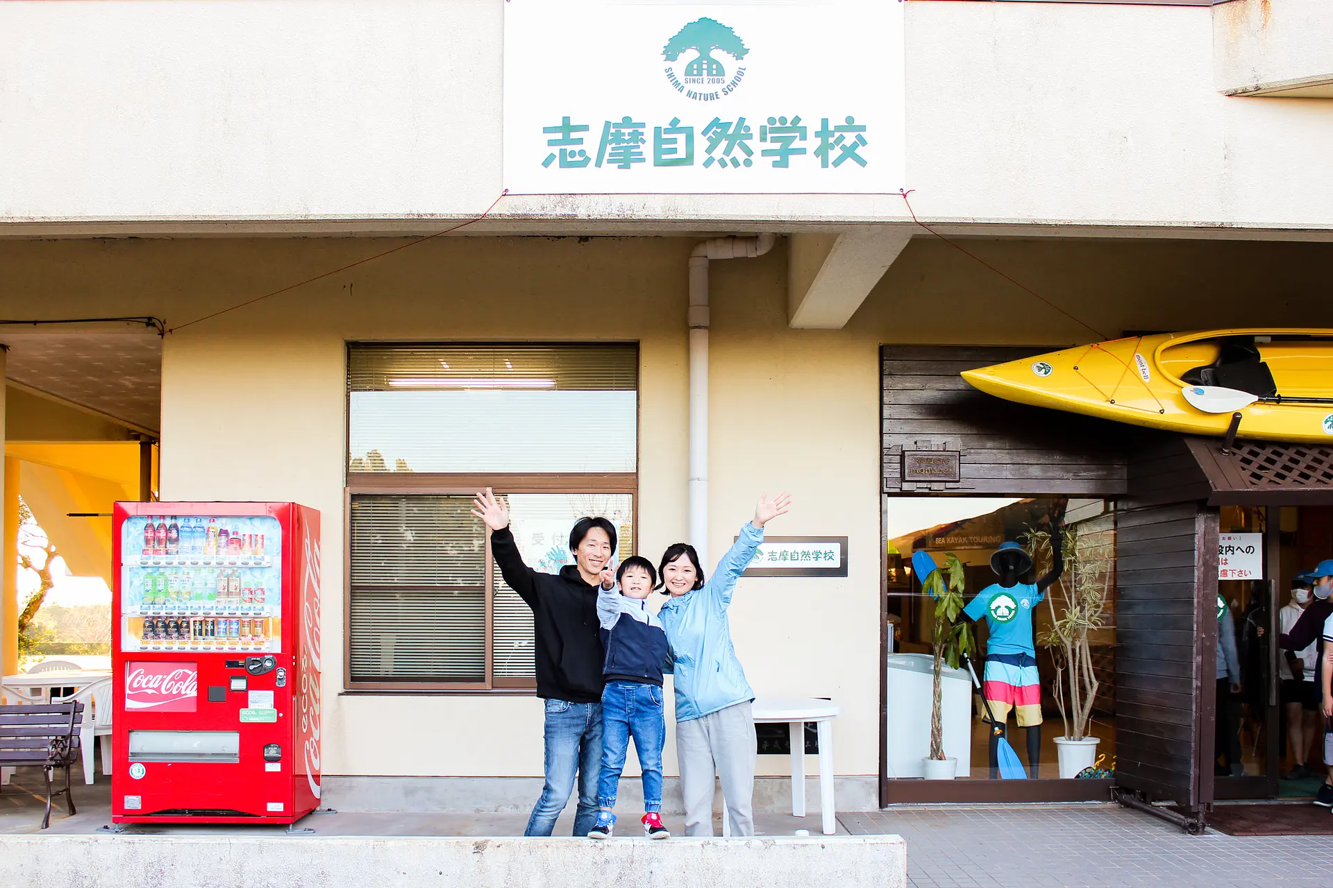 シーカヤックツアーってどんなだろう?とワクワクしながら、「志摩自然学校」に到着したファミリー。