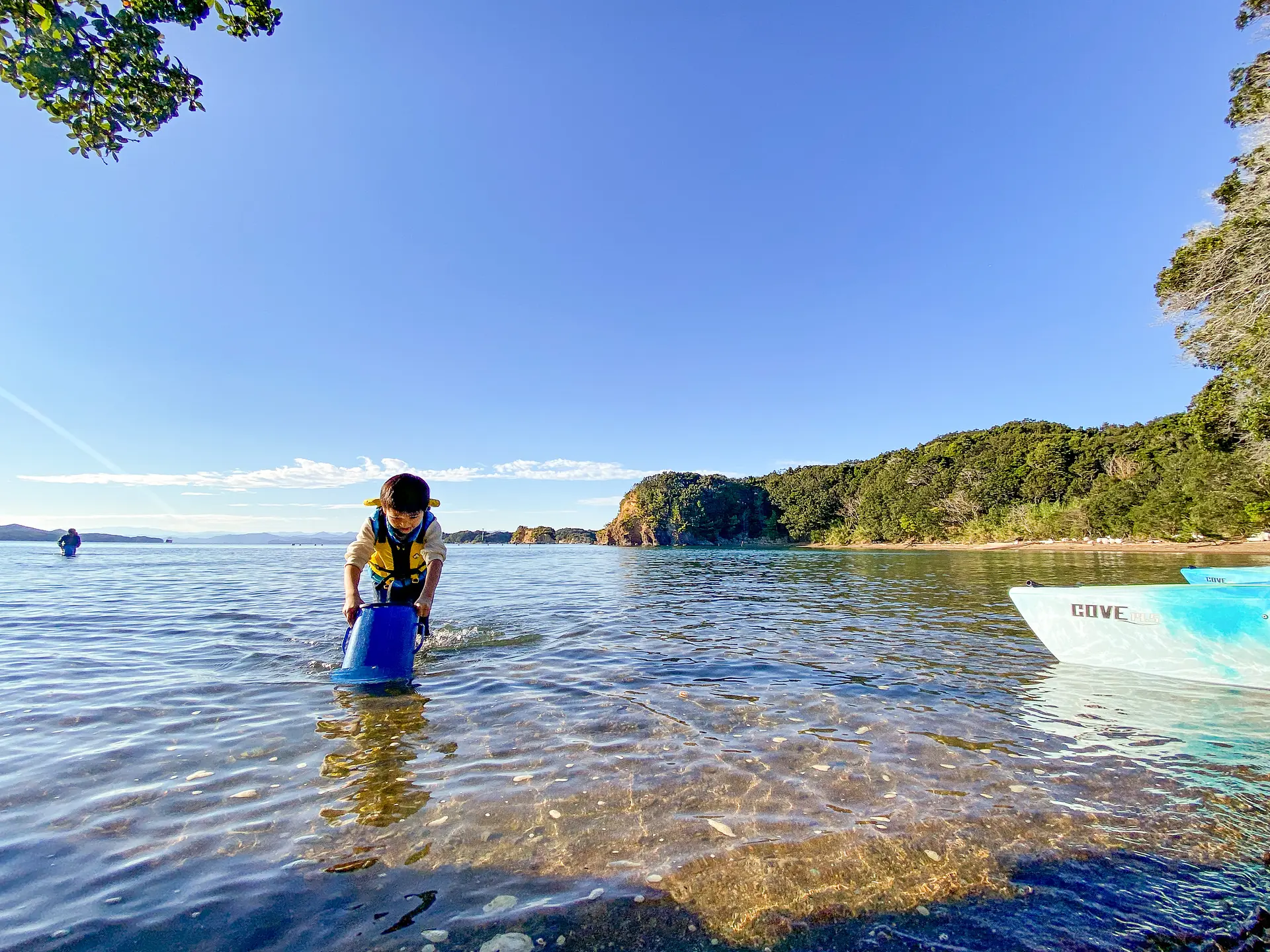 青空の下で心も身体も海へ解き放たれたような清々しさを、初めてのファミリーも気軽に体験することができました!