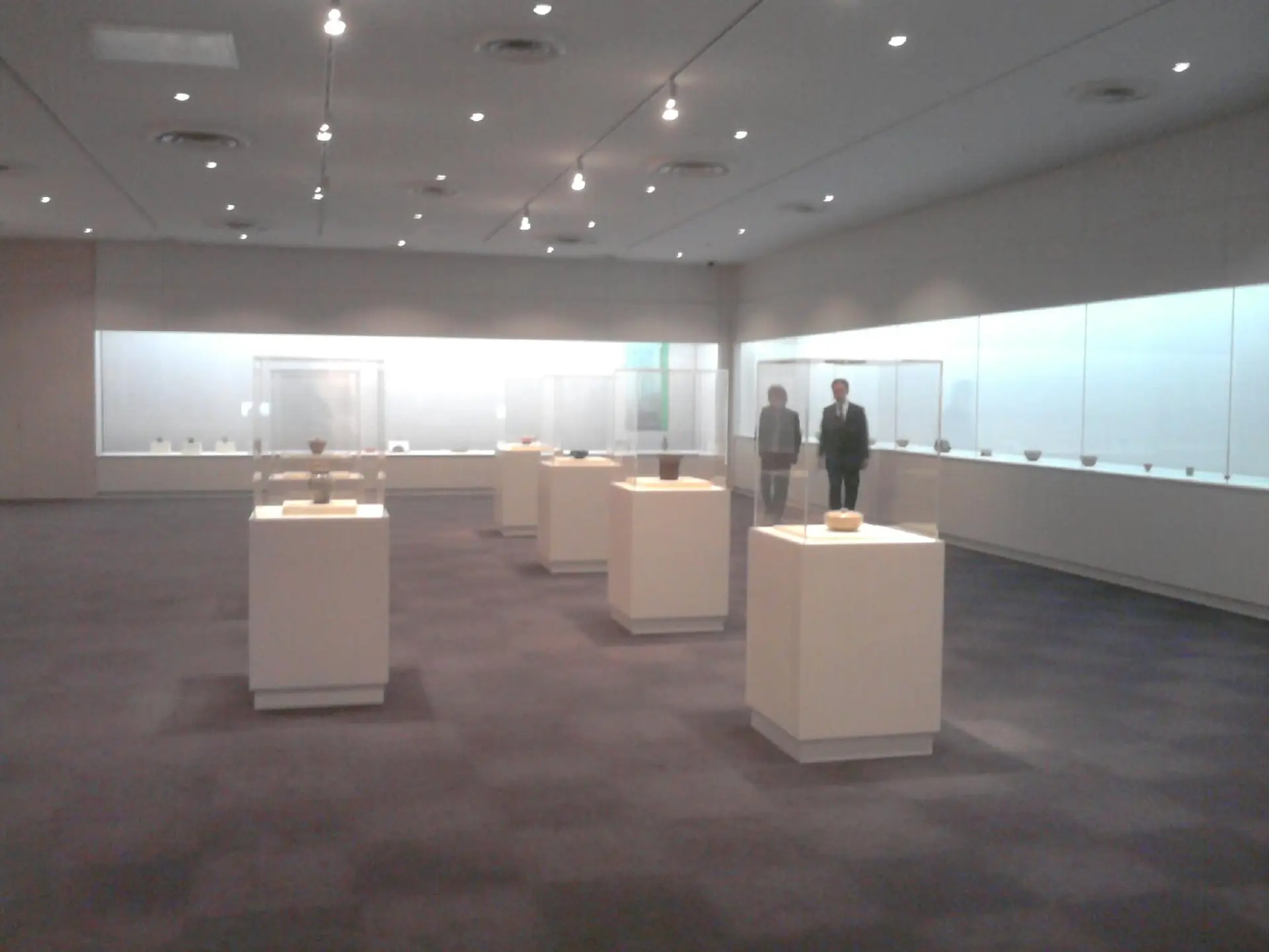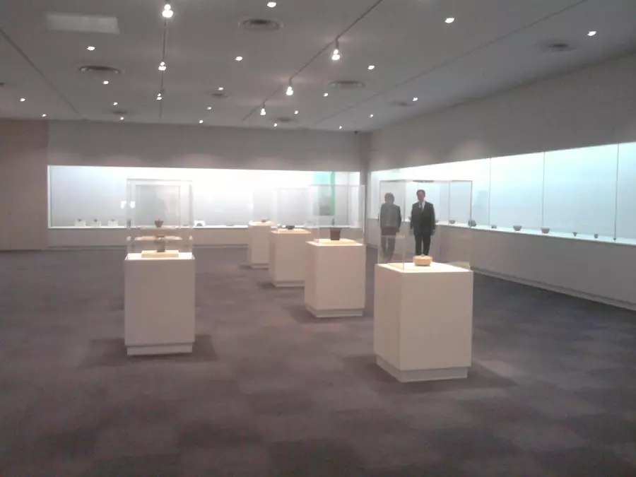 ゆったりした室内には、たくさんの萬古焼が展示されています。私たちが普段使っている薄手で茶褐色の日常的な萬古焼とは少し違い、美術品の顔を持つ作品が並んでいます。