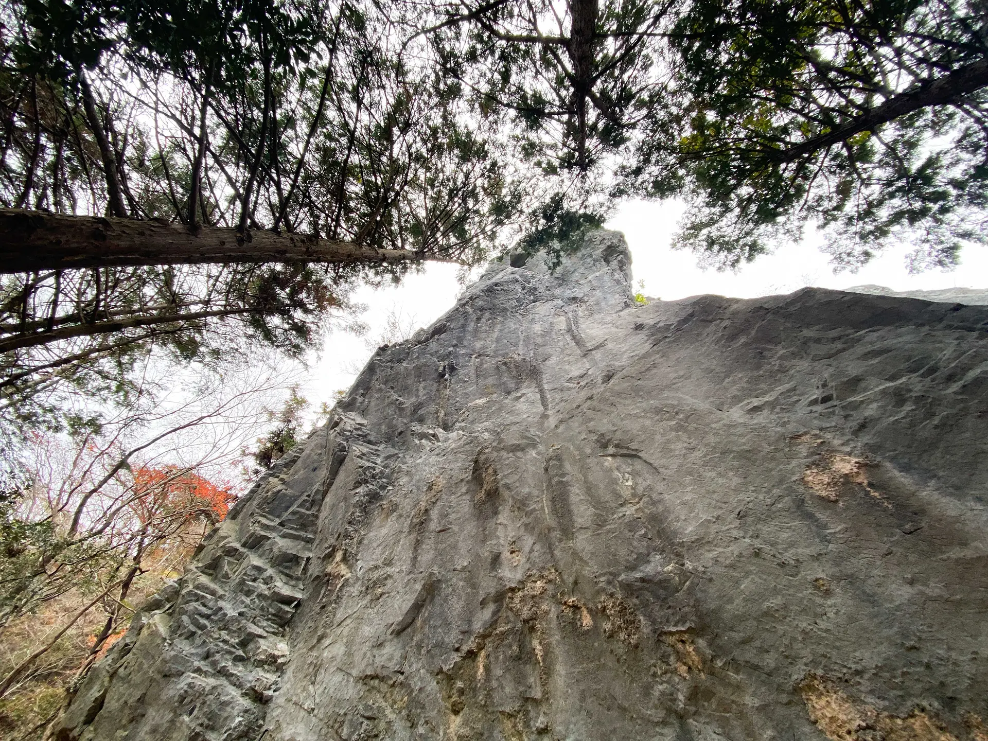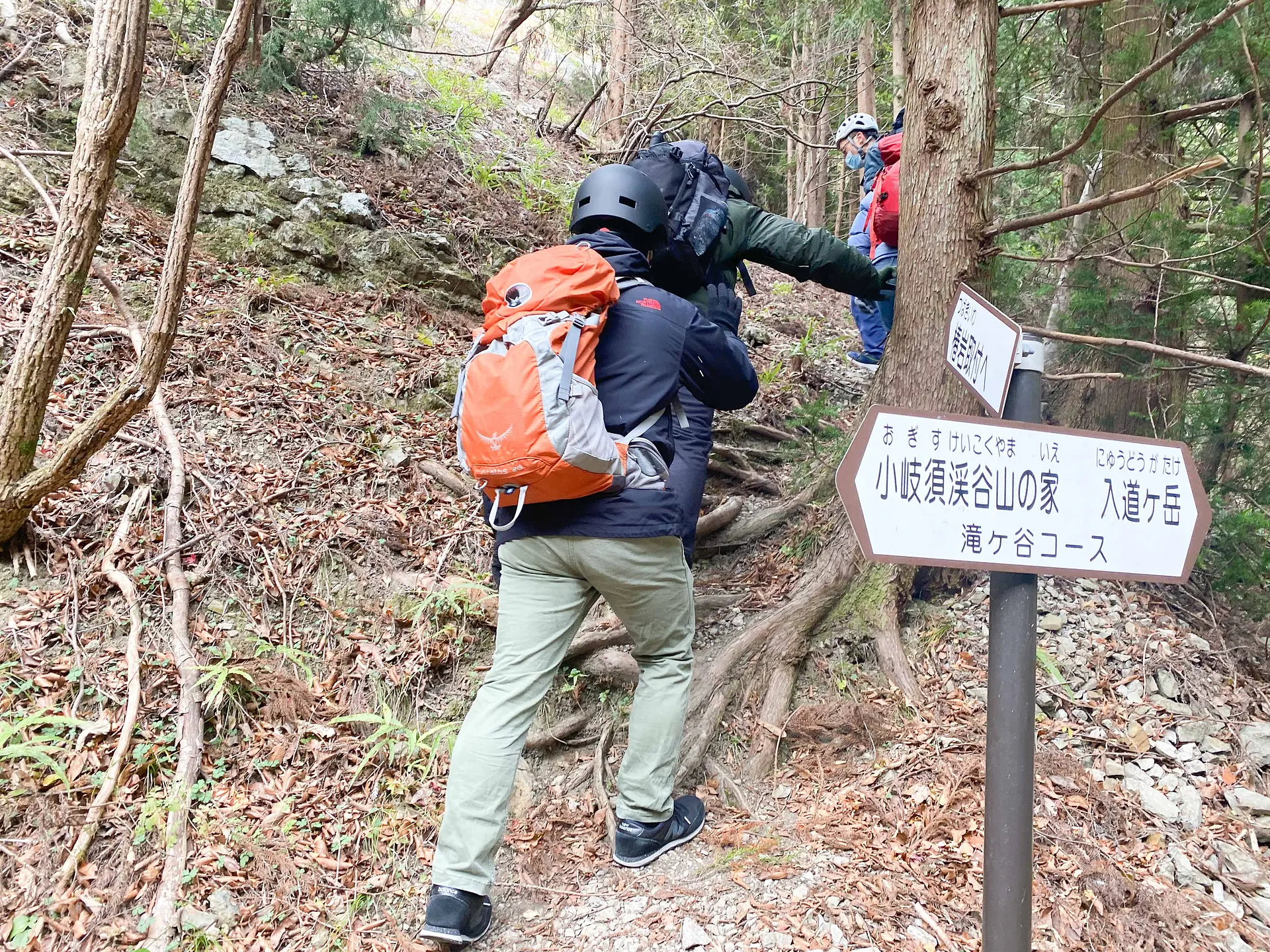 先駆者に感謝の気持ちを抱きつつ、目的地の岩場まで山を登ること15分。最後に、少々急な山道を登り到着!