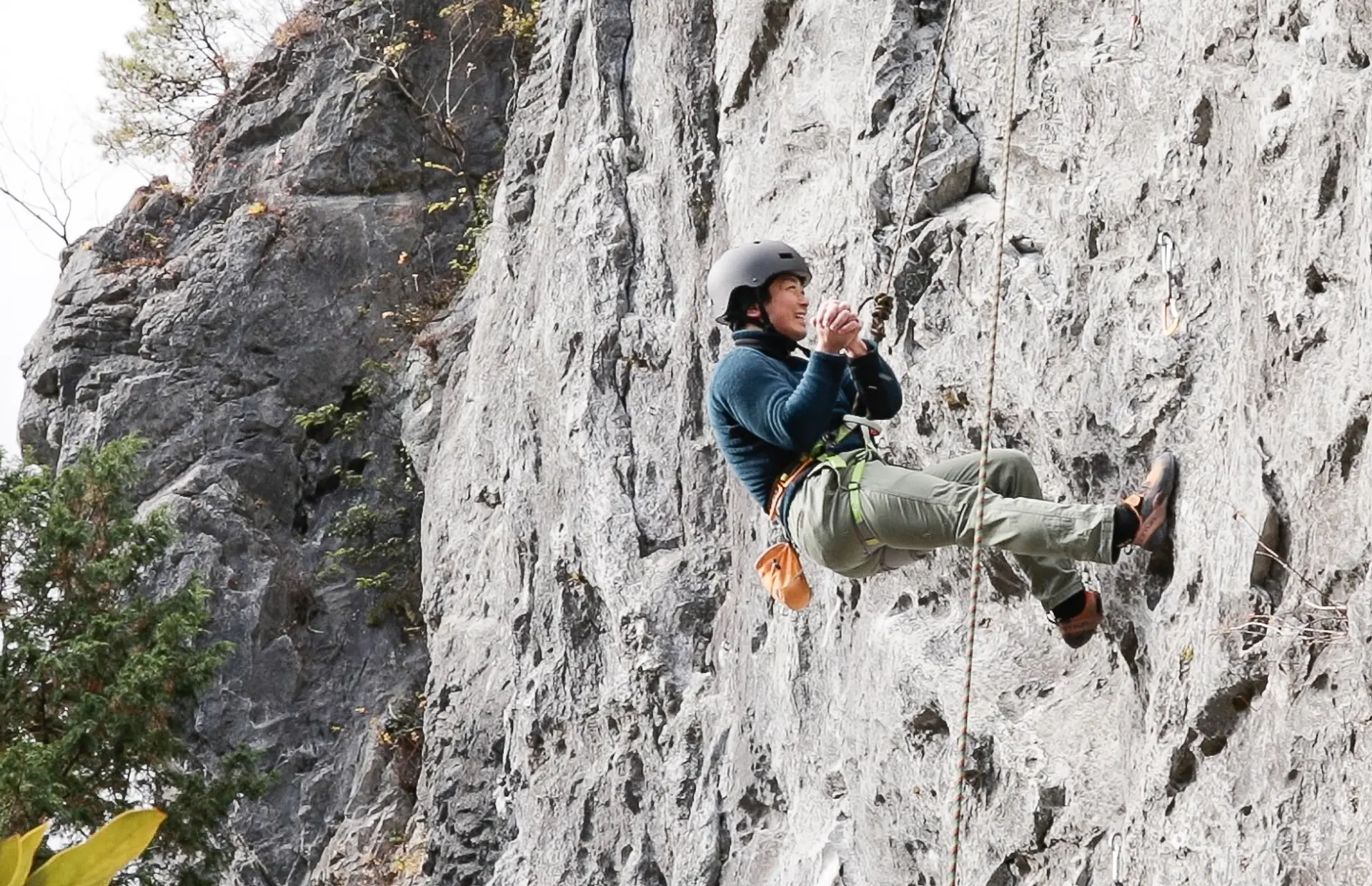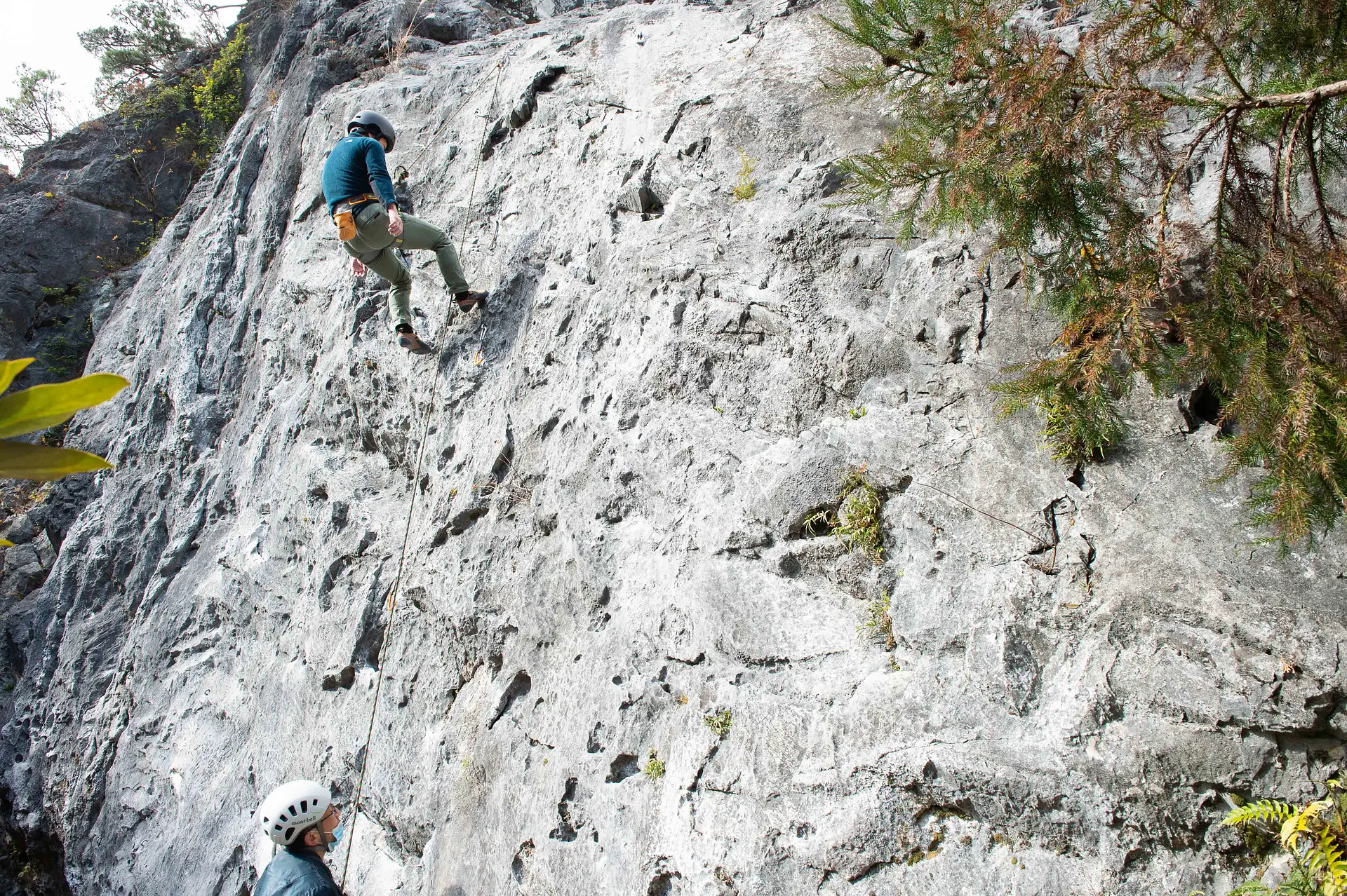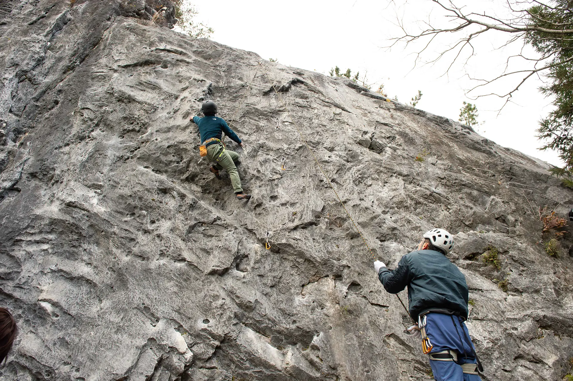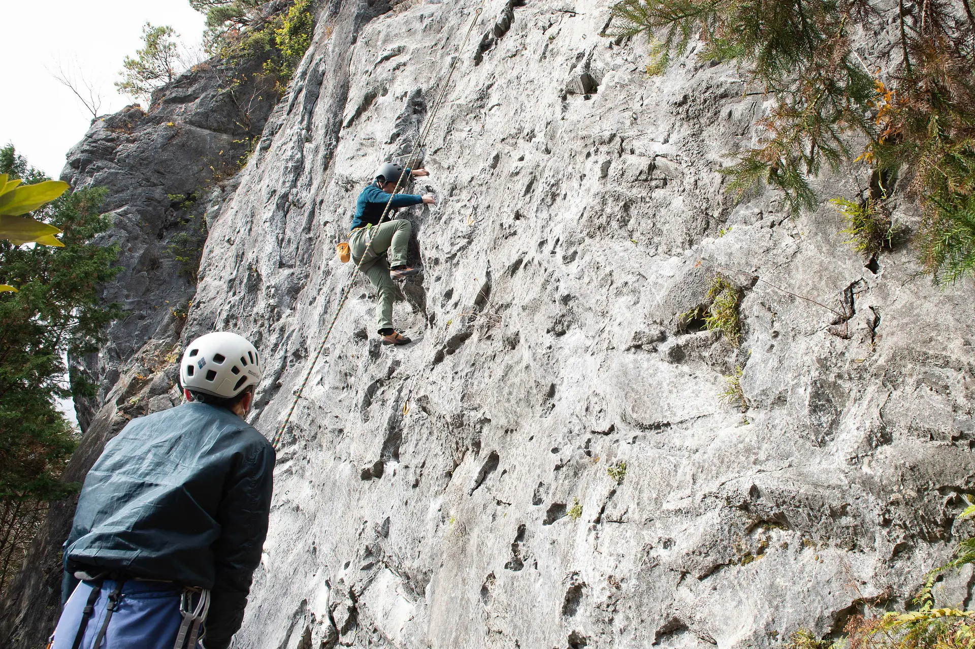 外岩を登るクライミングには、岩壁にいくつもある支点に自分でロープを通しながら登る「リードクライミング」と、あらかじめロープの支点が上部に確保された状態で、下にいるビレイヤーに支えてもらいながら登る「トップロープクライミング」という2つのクライミングスタイルがあります。