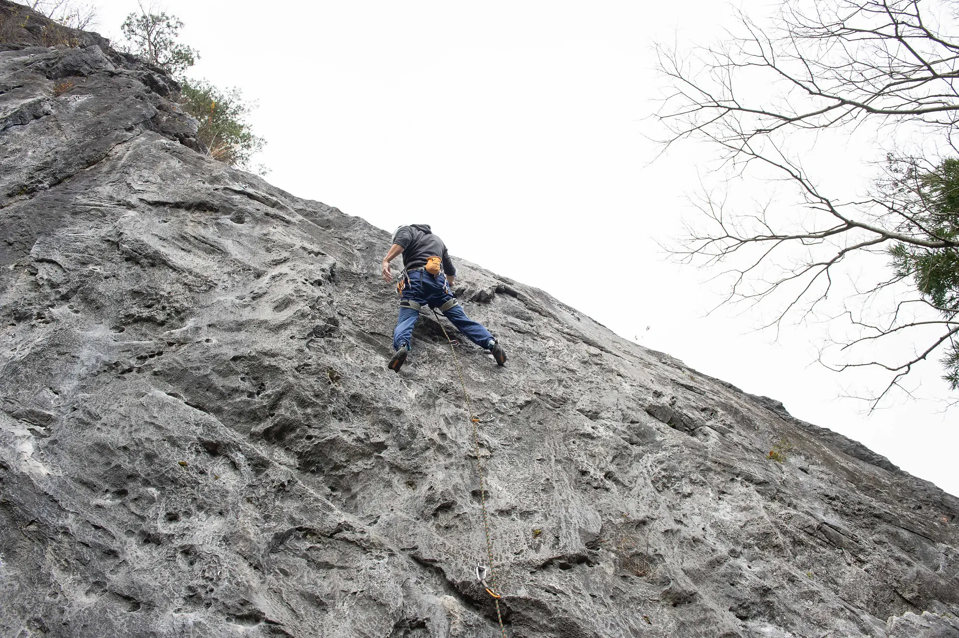 登っていく時は、わずかな岩の突起やくぼみ(=ホールド)に手や足をかけて登ります。