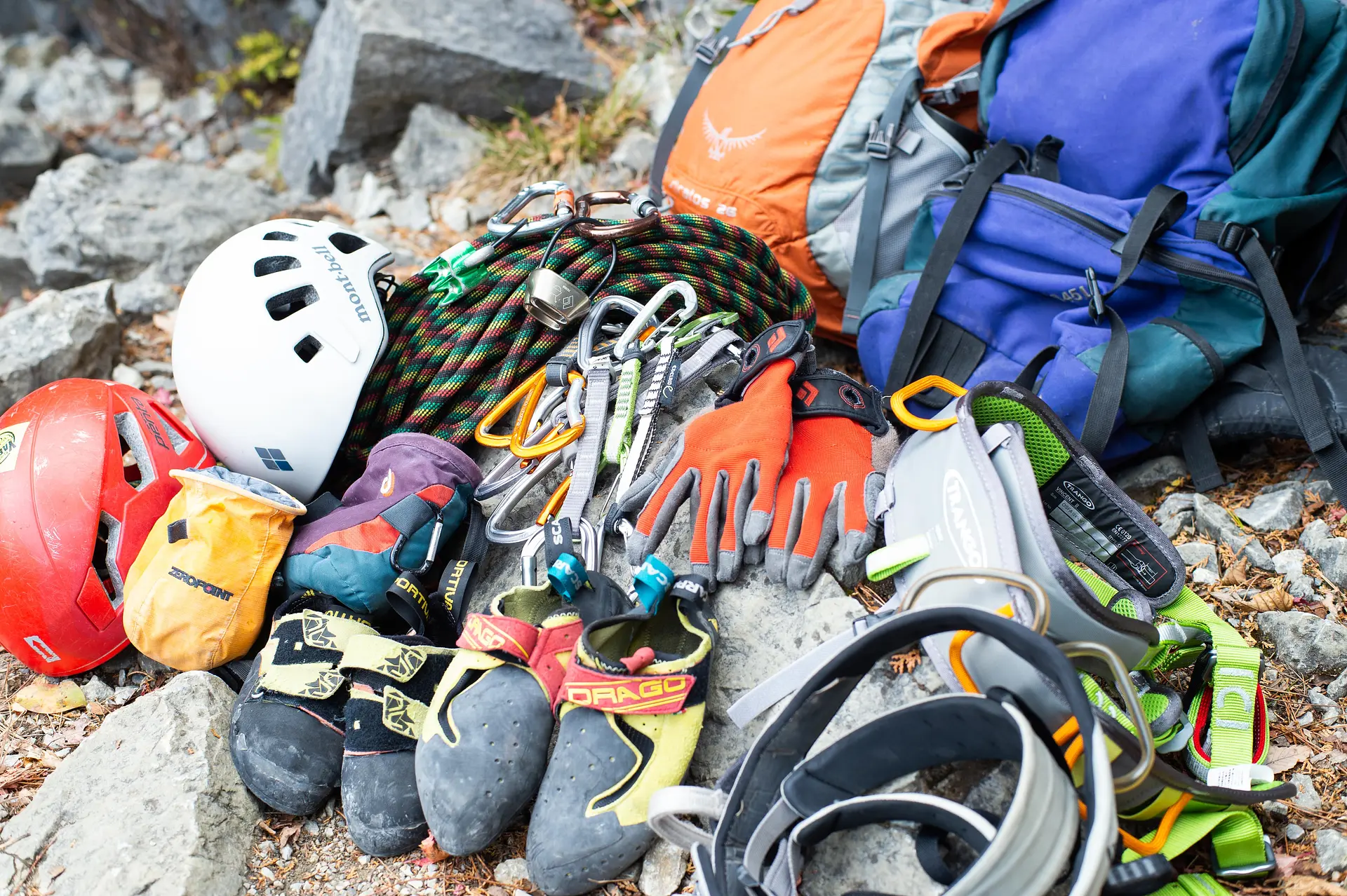 あとは登山をするための服装やシューズ、安全のためヘルメットを準備していきます。