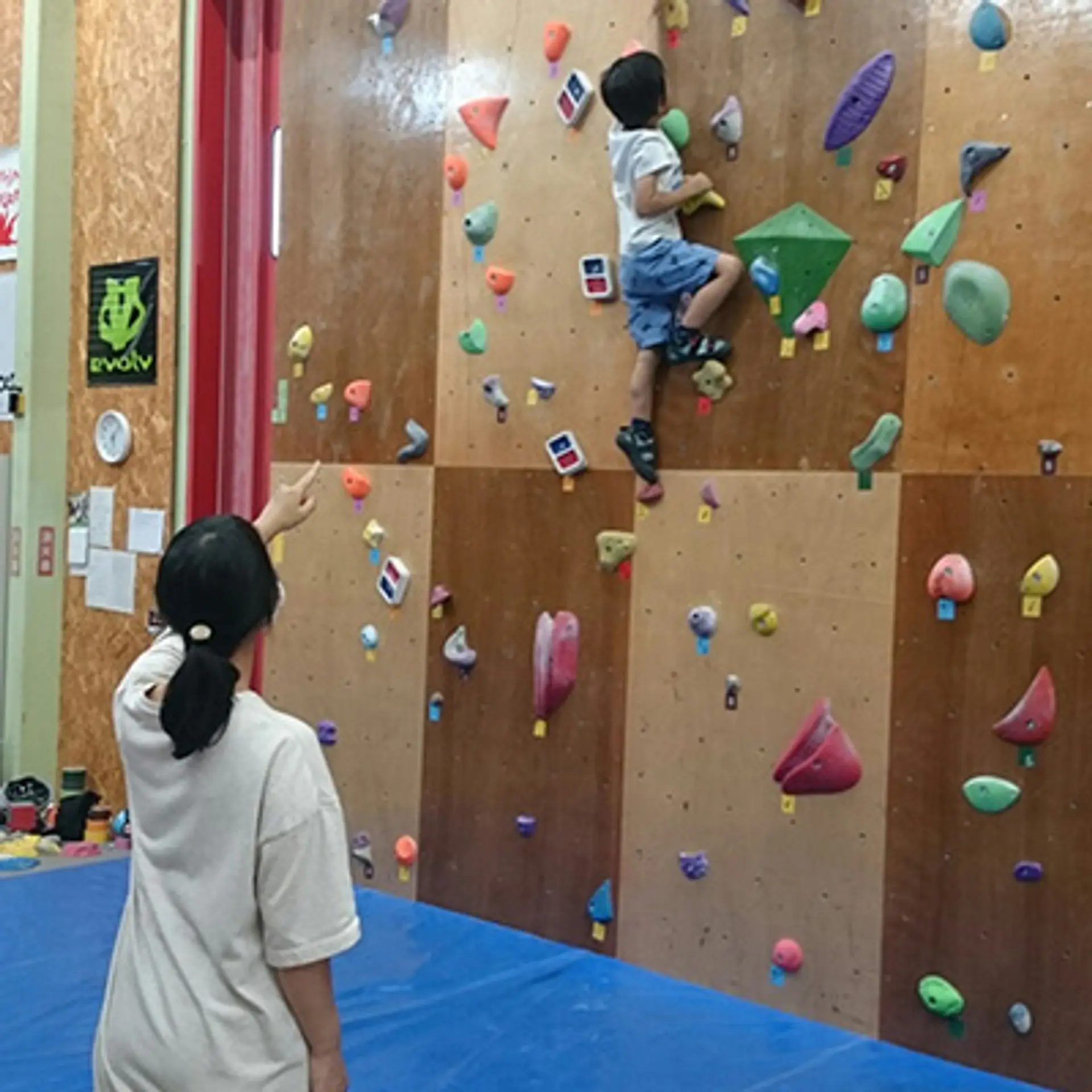 「休憩している間に、他のクライマーの登り方を見てみるといいよ」と清水さん。自分が苦戦した場所をどのように登っているのか、足の置く位置は?体の使い方は?など。これも研究です!