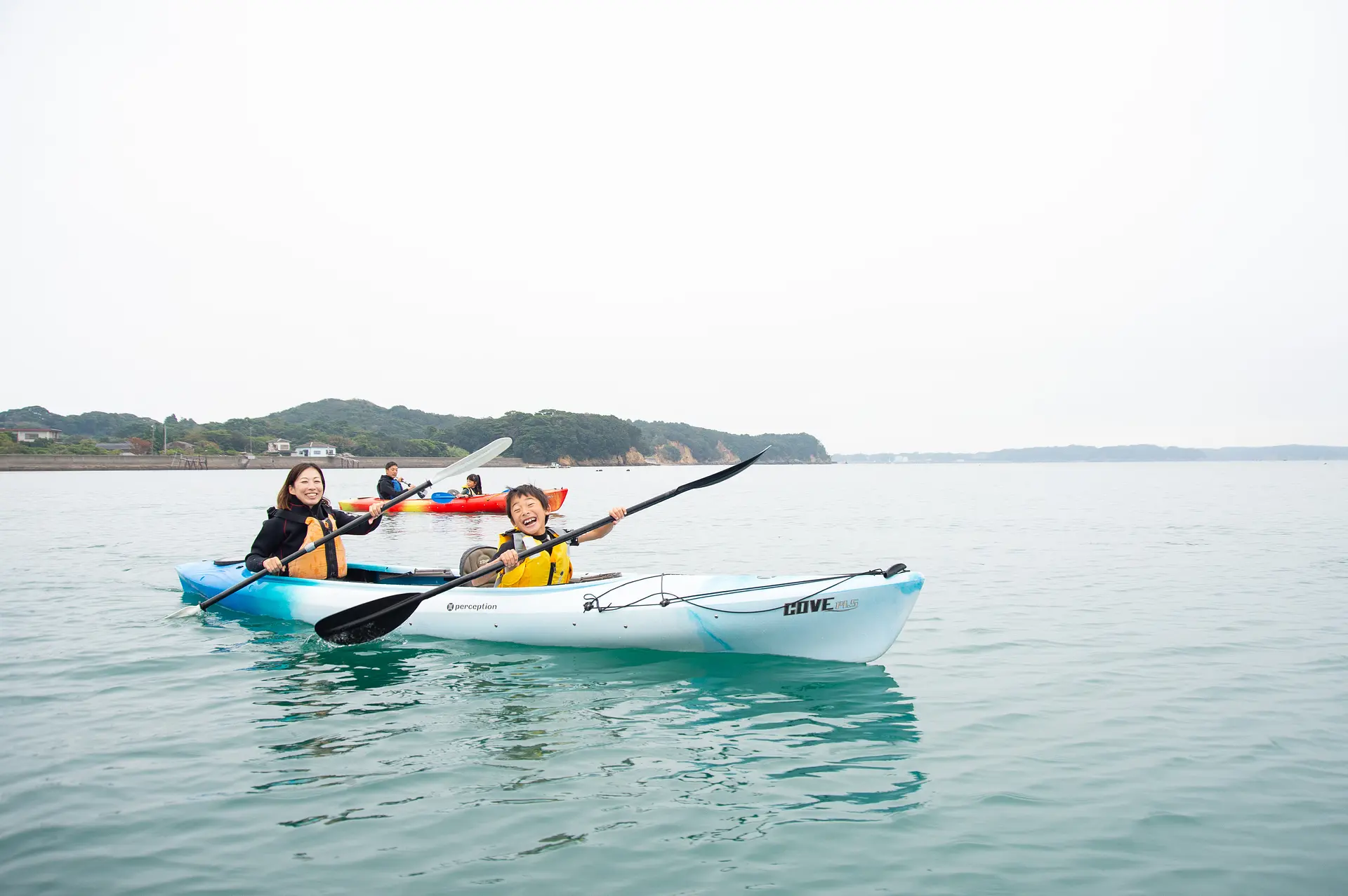 カヤックは二人乗りなので、親子でもカップルでも一緒に楽しめます。