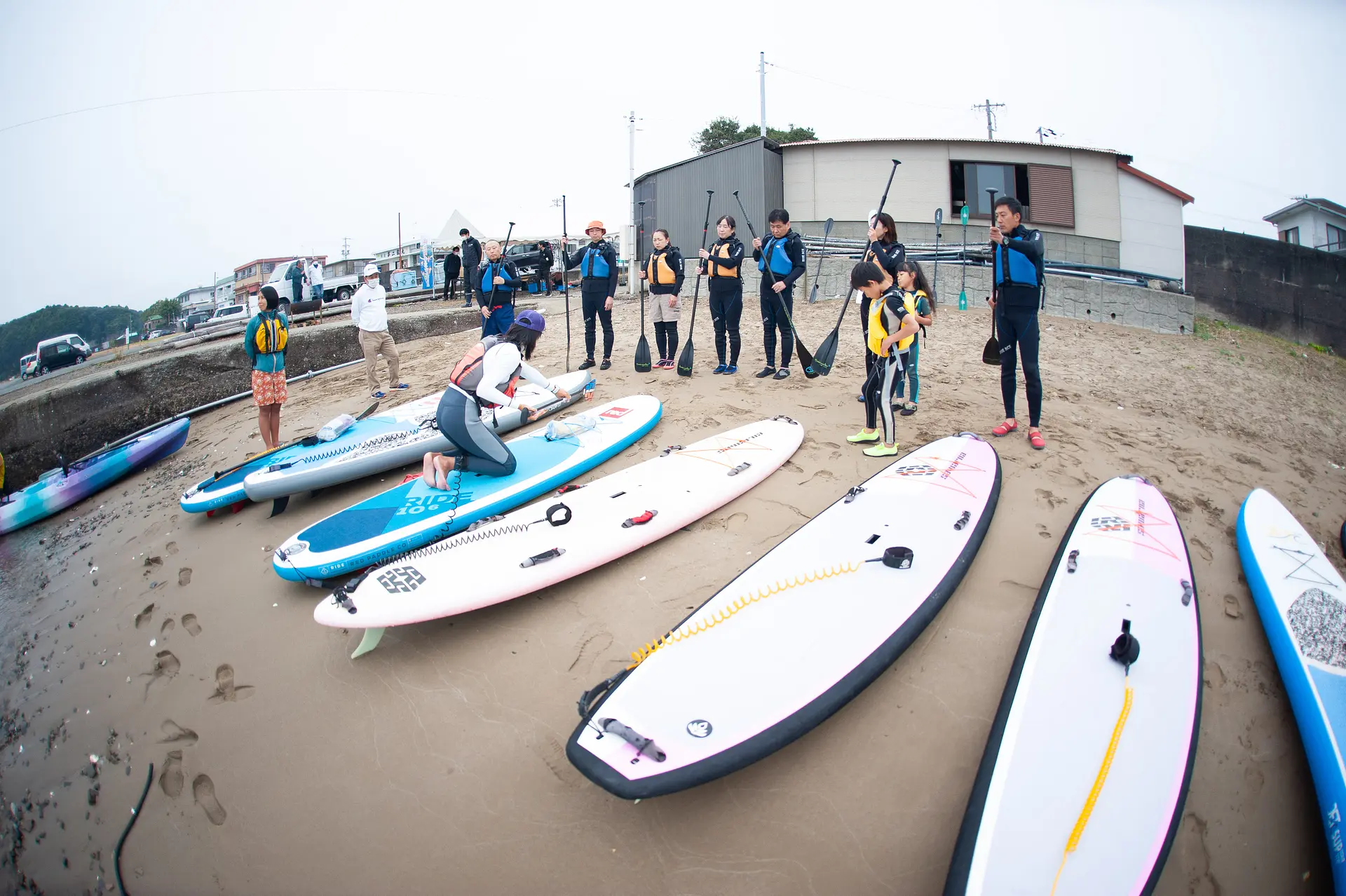 はじめてのSUPにドキドキの子どもたち。