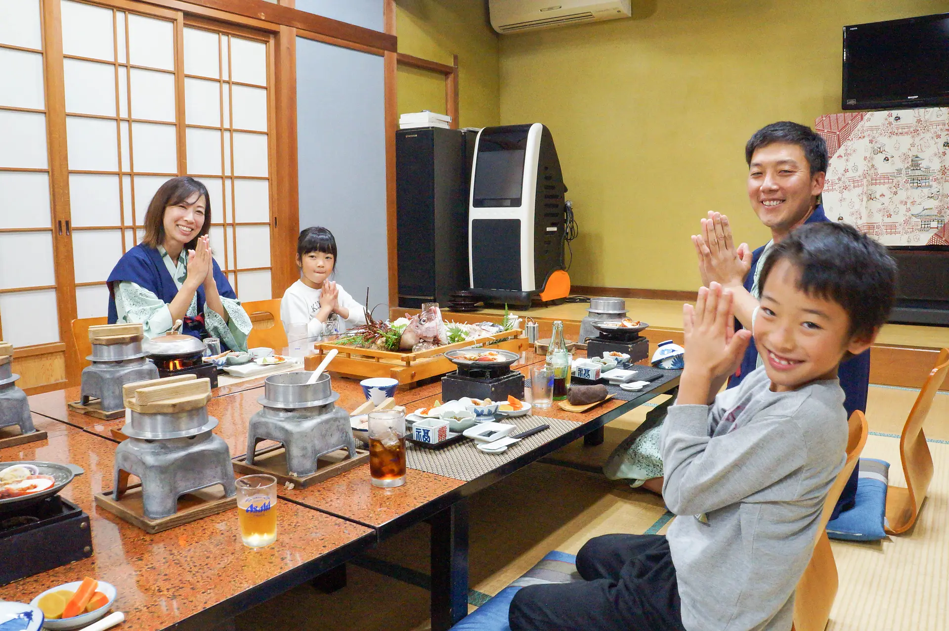 夜は、目の前の的矢湾で採れた海の幸をふんだんに味わいました。
