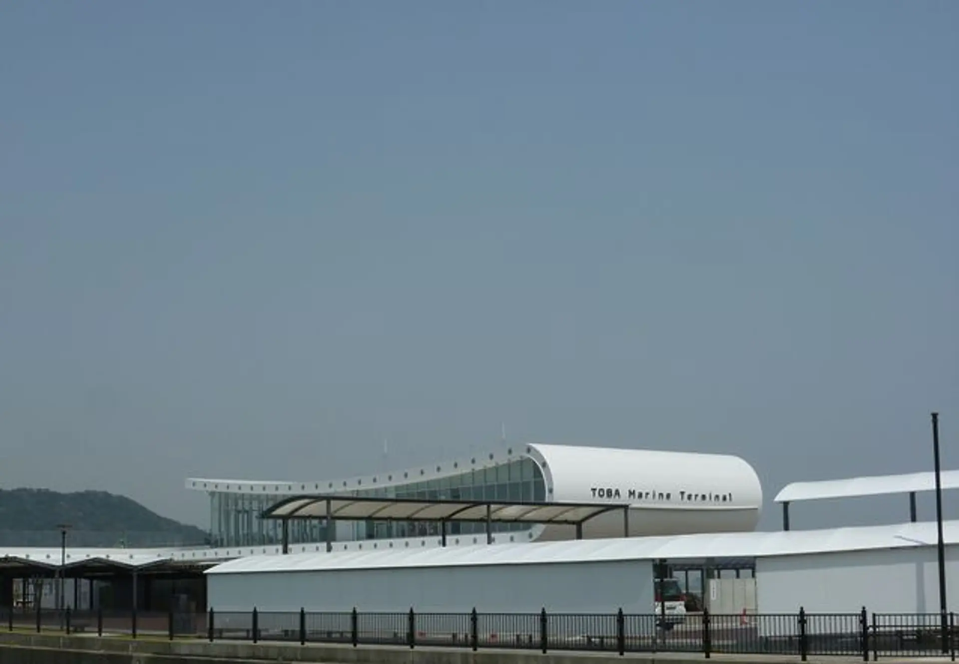 写真だと見づらくて恐縮ですが、ターミナルの外観は何をイメージしたものかわかりますか? 答えは、鳥羽の特産「真珠」のネックレスです!夜にはLEDライトが発光するそうです。