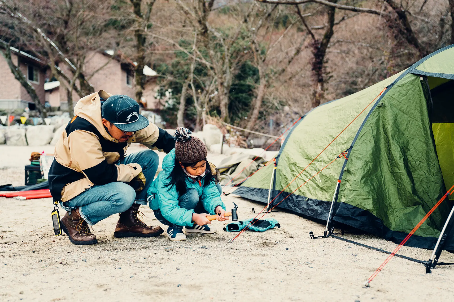 テント張りは少し苦戦しましたが、それもキャンプの醍醐味。