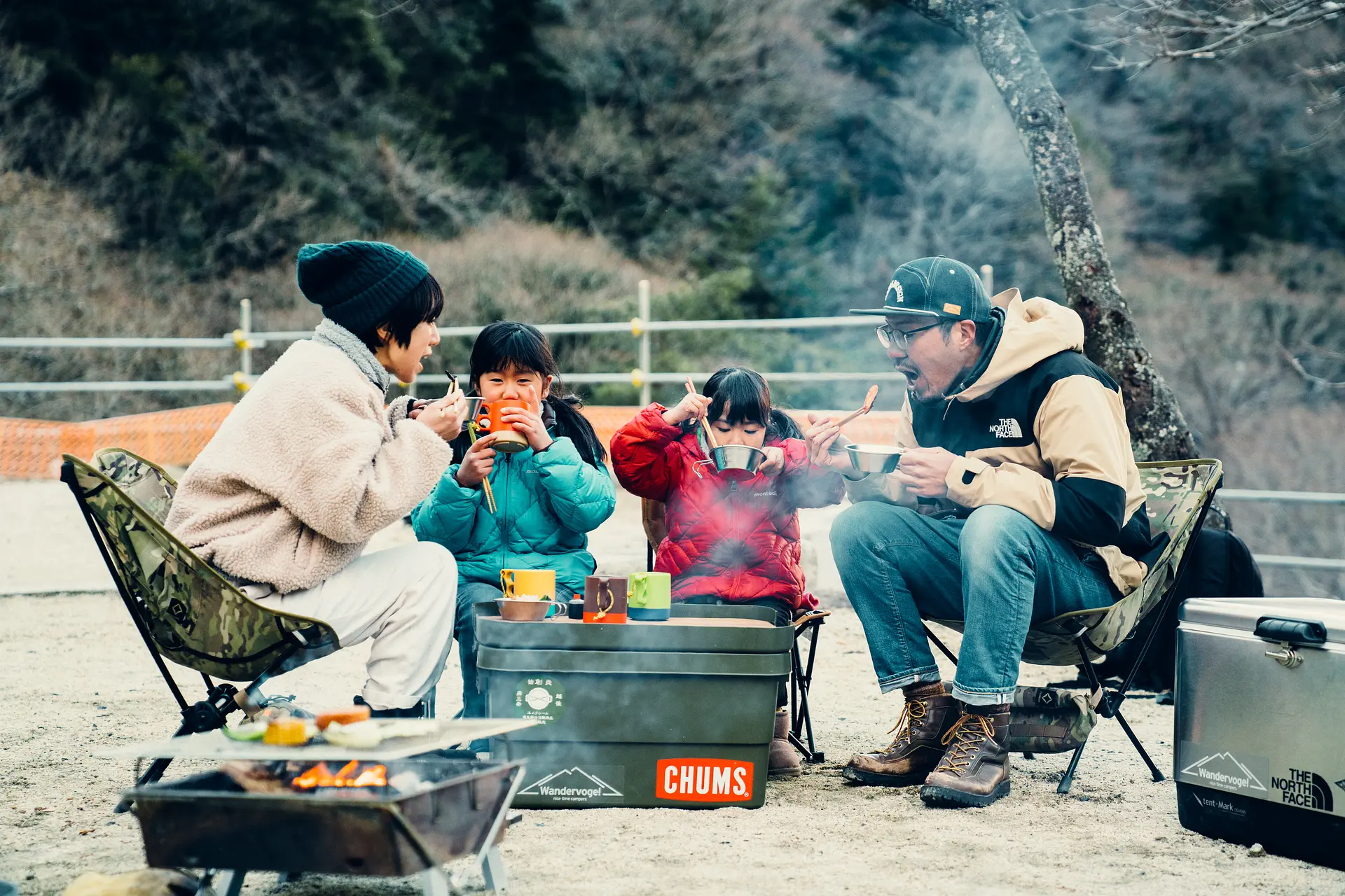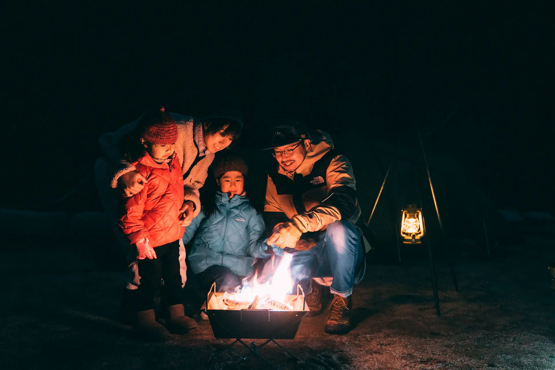 火に入れると7色に炎が変化する「color flame」(1個300円/税込 ※キャンプ場内の売店で販売)も活躍。ふと空を見上げると満点の星空! みんなで星座の話をするのも楽しい。
