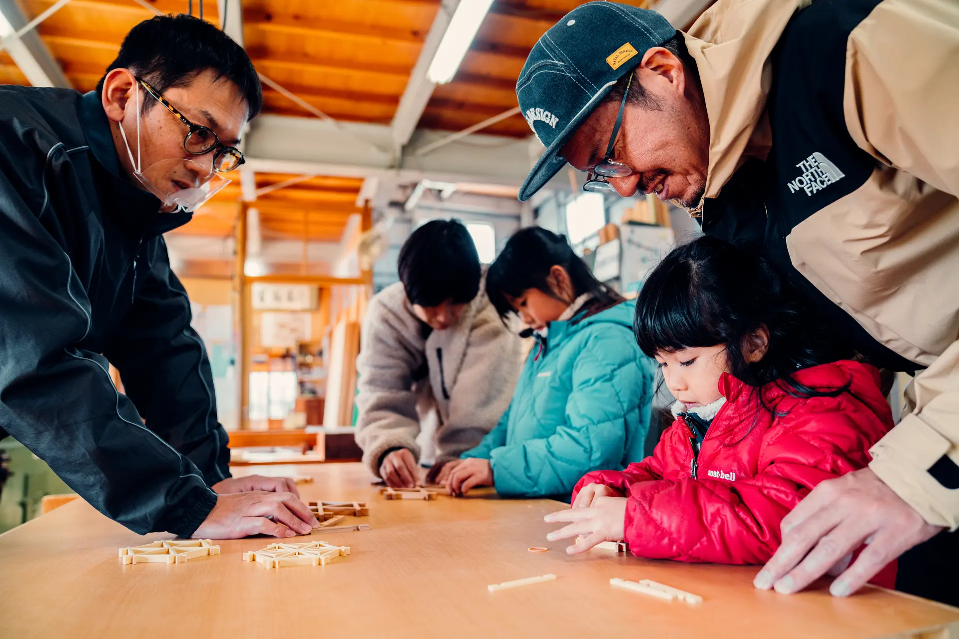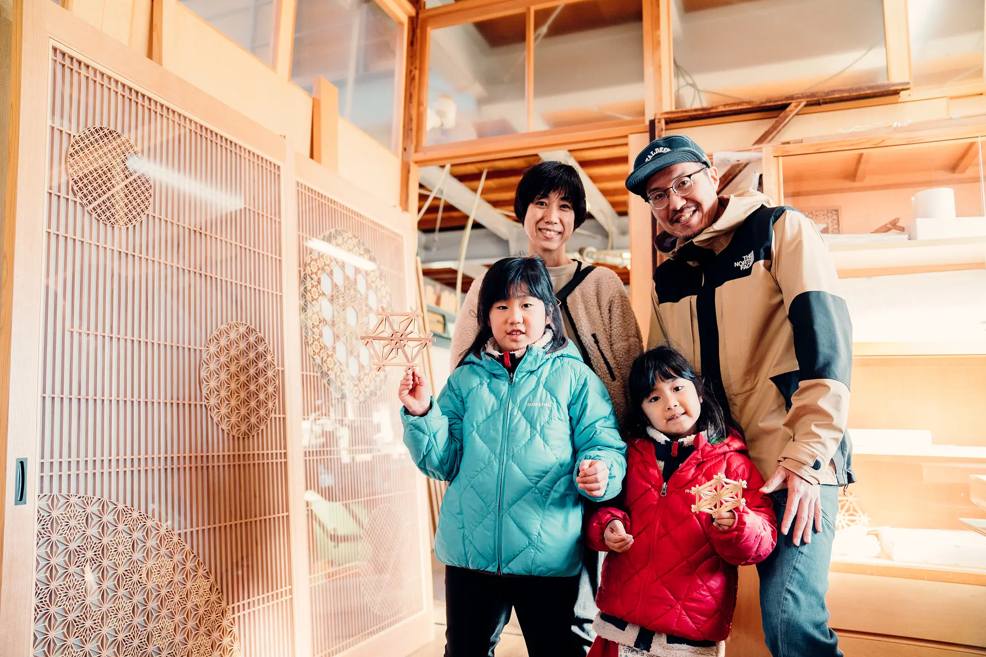 釘を使わず、窓や障子の格子などを装飾する技術を学びながら、2組に分かれて、鍋敷きとコースターをつくります(鍋敷き3,000円、コースター2,000円/ともに税込)。