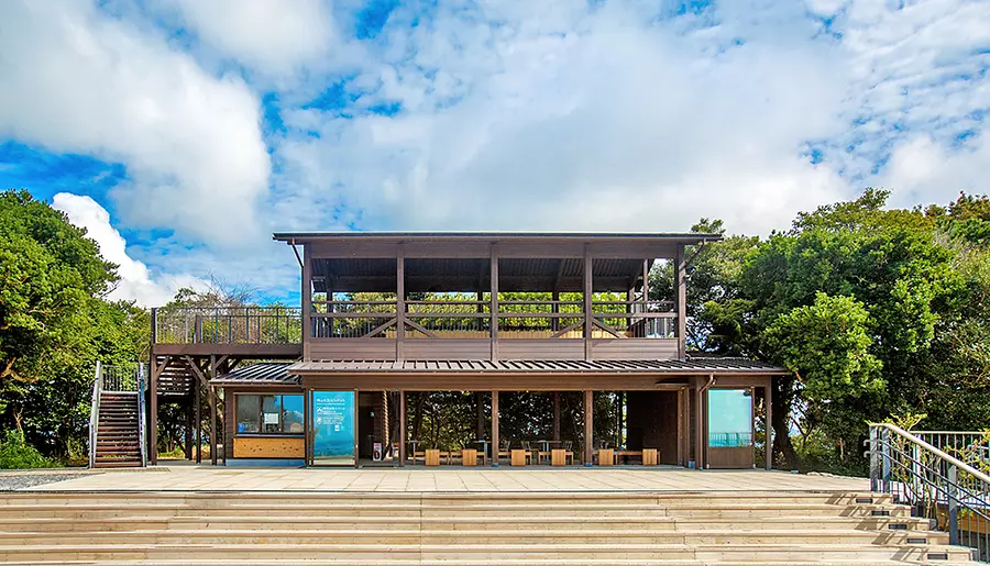志摩地域の美しい海と、リアス海岸の造形が一望できる「横山展望台」は、ミシュラン・グリーンガイド・ジャポンで☆(一つ星)を獲得しています。2018年にリニューアルされ、その一角にオープンしたのが「横山天空カフェテラス ミラドール志摩」。三重県産のヒノキ材を敷き詰めたウッドデッキからは、眼下に英虞湾の絶景が広がり、まるで宙に浮いたような感覚。自然との一体感に浸りつつ、ここだけのブレイクタイムを味わえます。