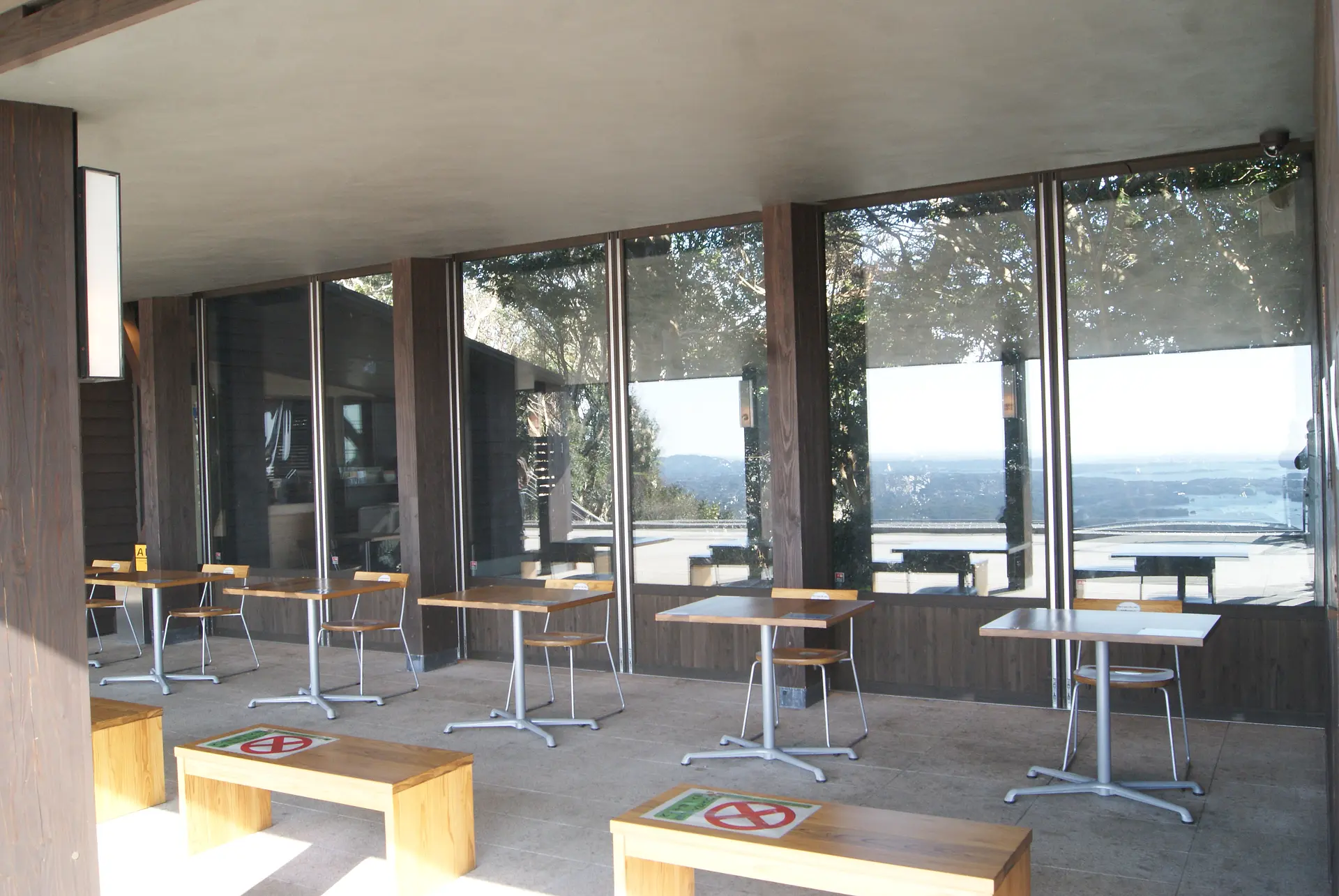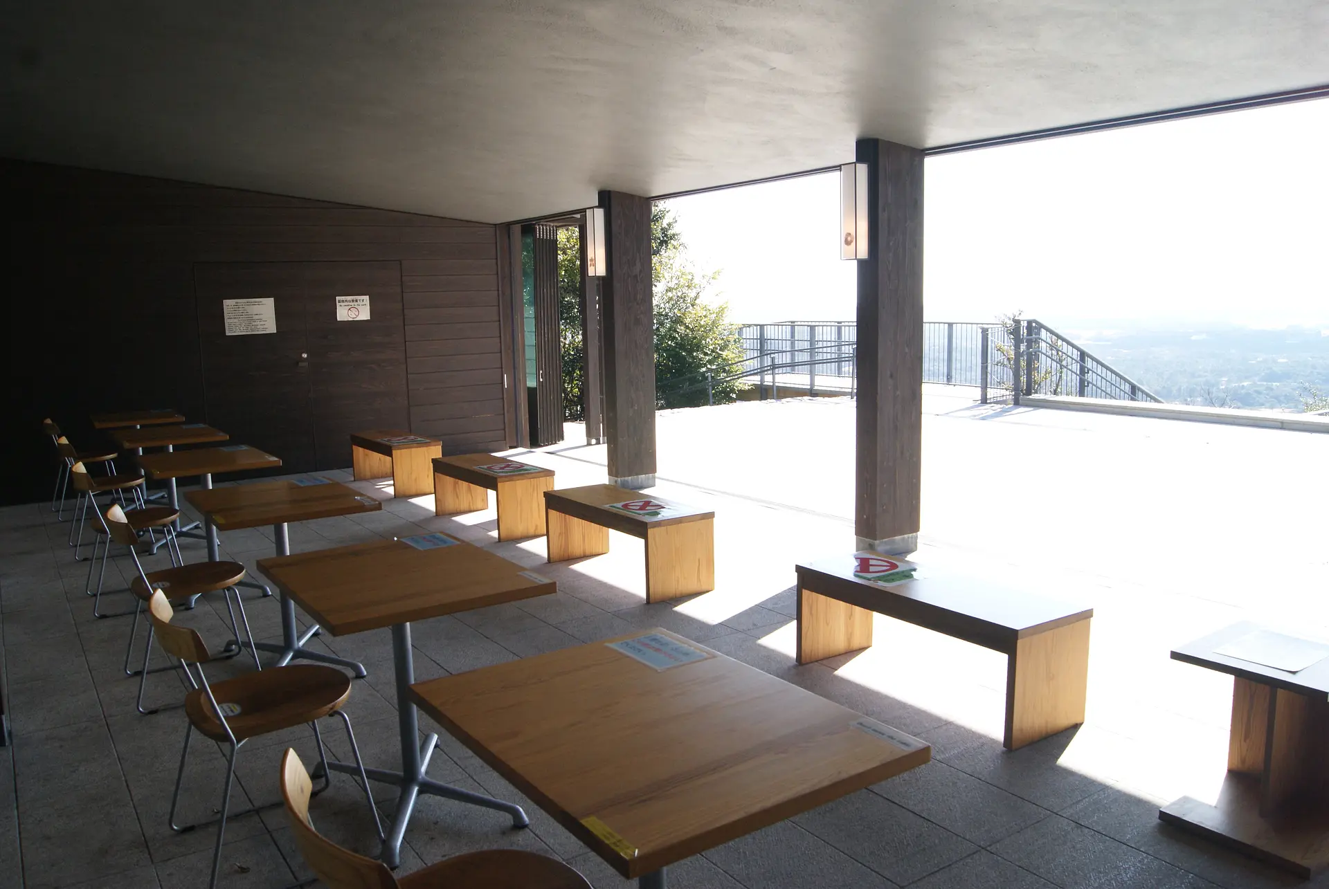 客席はオープンが基本。現在は感染症対策を徹底するため、席数を減らしていることもありますが、自然のままの風が吹き抜けます。冷暖房は一切なし。