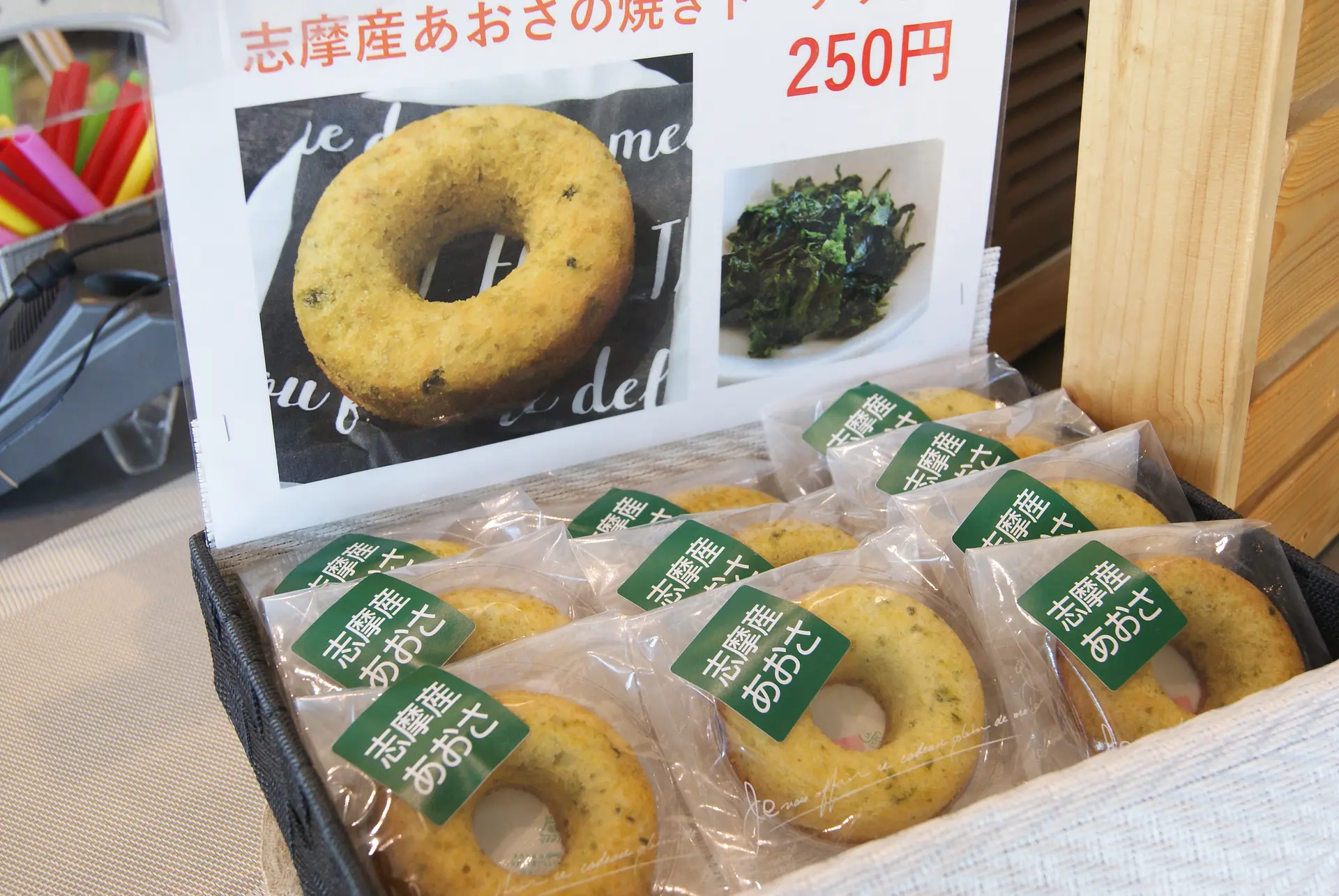 「志摩産あおさの焼きドーナツ」(250円・税込)は、昨年秋に登場。あおさのゆたかな磯の香りが、ドーナツに違和感なくマッチする不思議。今や、すっかり定着した新スイーツです。